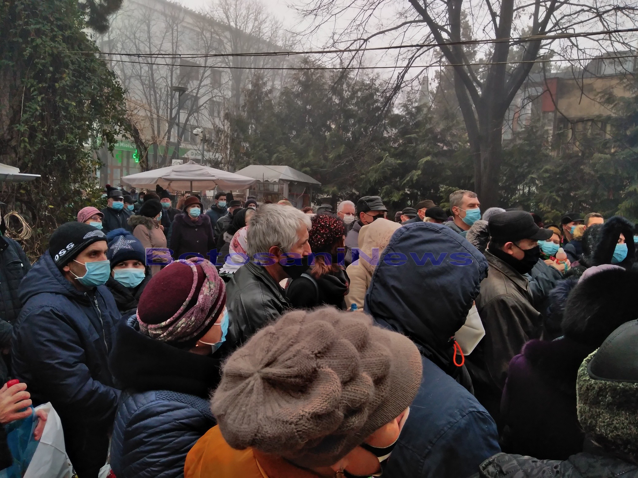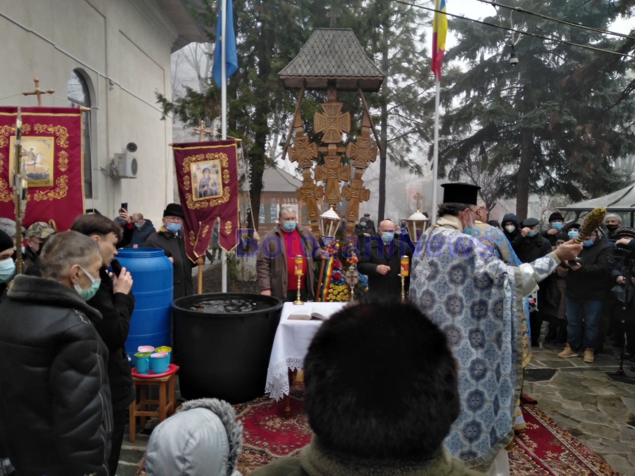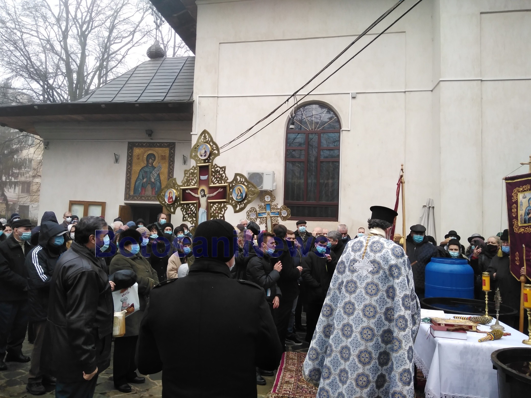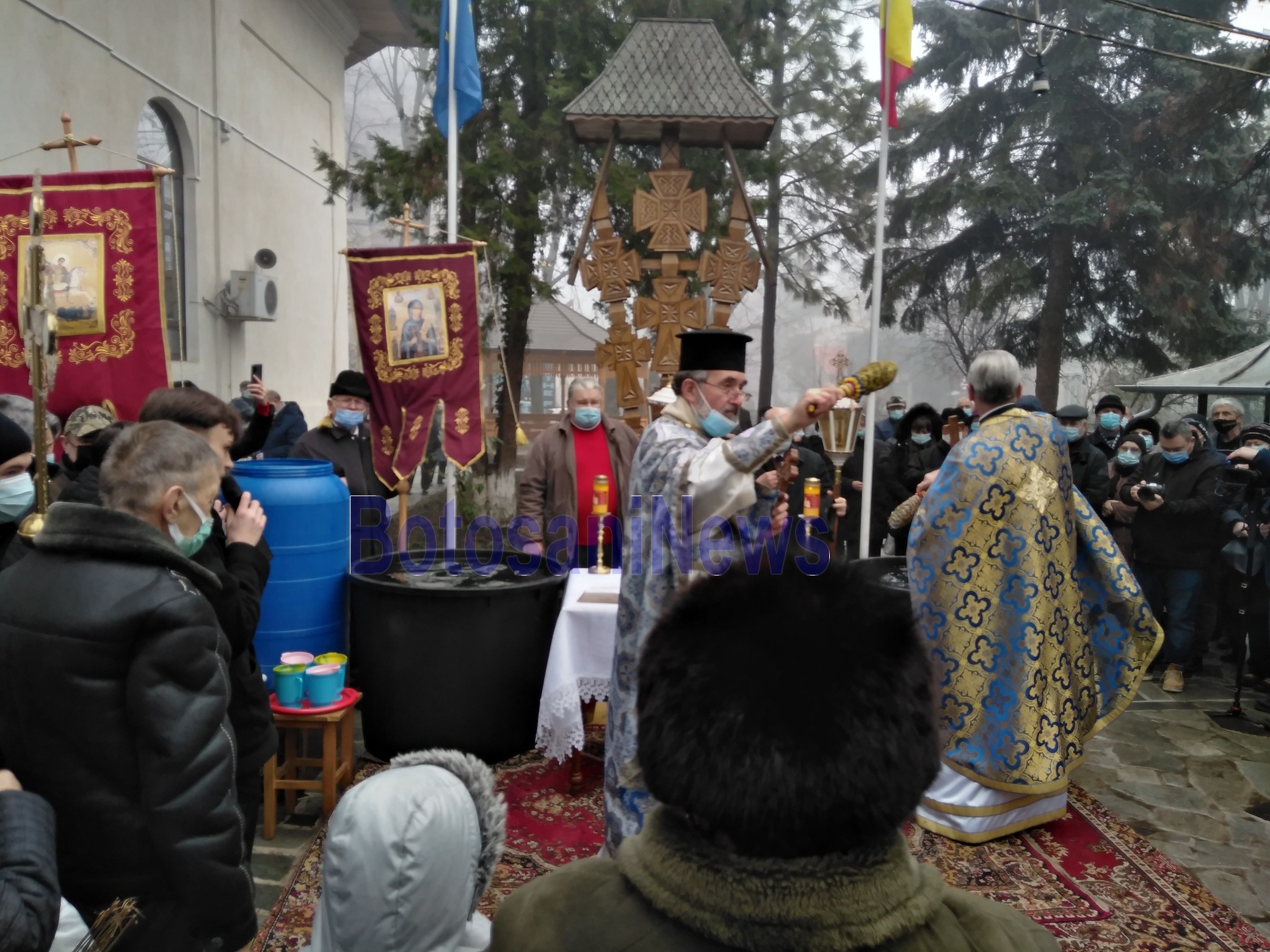 Mii de credincioşi din municipiul Botoşani au sfidat pandemia și s-au călcat în picioare pentru a lua apă sfinţită de Bobotează. Preoţii au oficiat mai întâi Sfânta Liturghie, după care au ieşit afară şi au ţinut noi slujbe de sfinţire a apei.