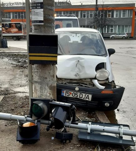 Un botoșănean a produs un accident, duminică, pe Calea Chișinăului din municipiul Iași. Acesta a intrat cu mașina într-un stâlp semafor și l-a culcat la pământ. S.B. a pierdut controlul asupra volanului, iar impactul a fost inevitabil.