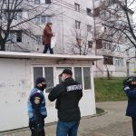 Protest la înălțime la Botoșani! Un bărbat de 58 de ani amenință că se aruncă în cap de pe un chioșc dacă la fața locului nu vin reprezentanți ai Primăriei și ai Direcției de Impozite și Taxe.