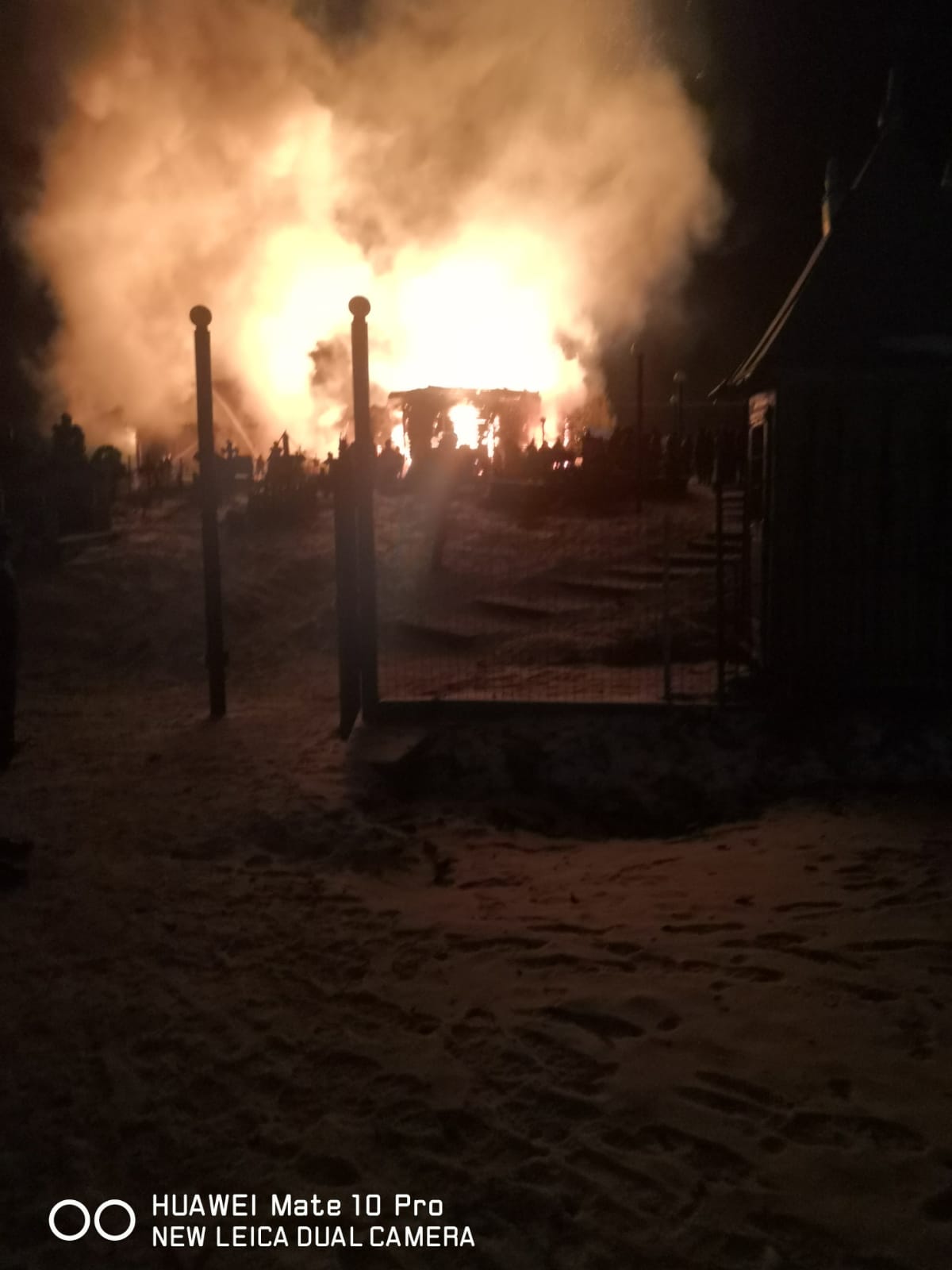A ars în totalitate biserica, construită din lemn, cu învelitoare din tablă, pe o suprafață de aproximativ 200 mp, cu bunurile din interior (obiecte de cult, cărți, veșminte preoțești, elemente de mobilier și altele). Au mai ars clădirea clopotniței, din lemn, cu învelitoare din tablă, pe o suprafață de  proximativ 100 mp, obiecte de mobilier și alte bunuri din interior.
