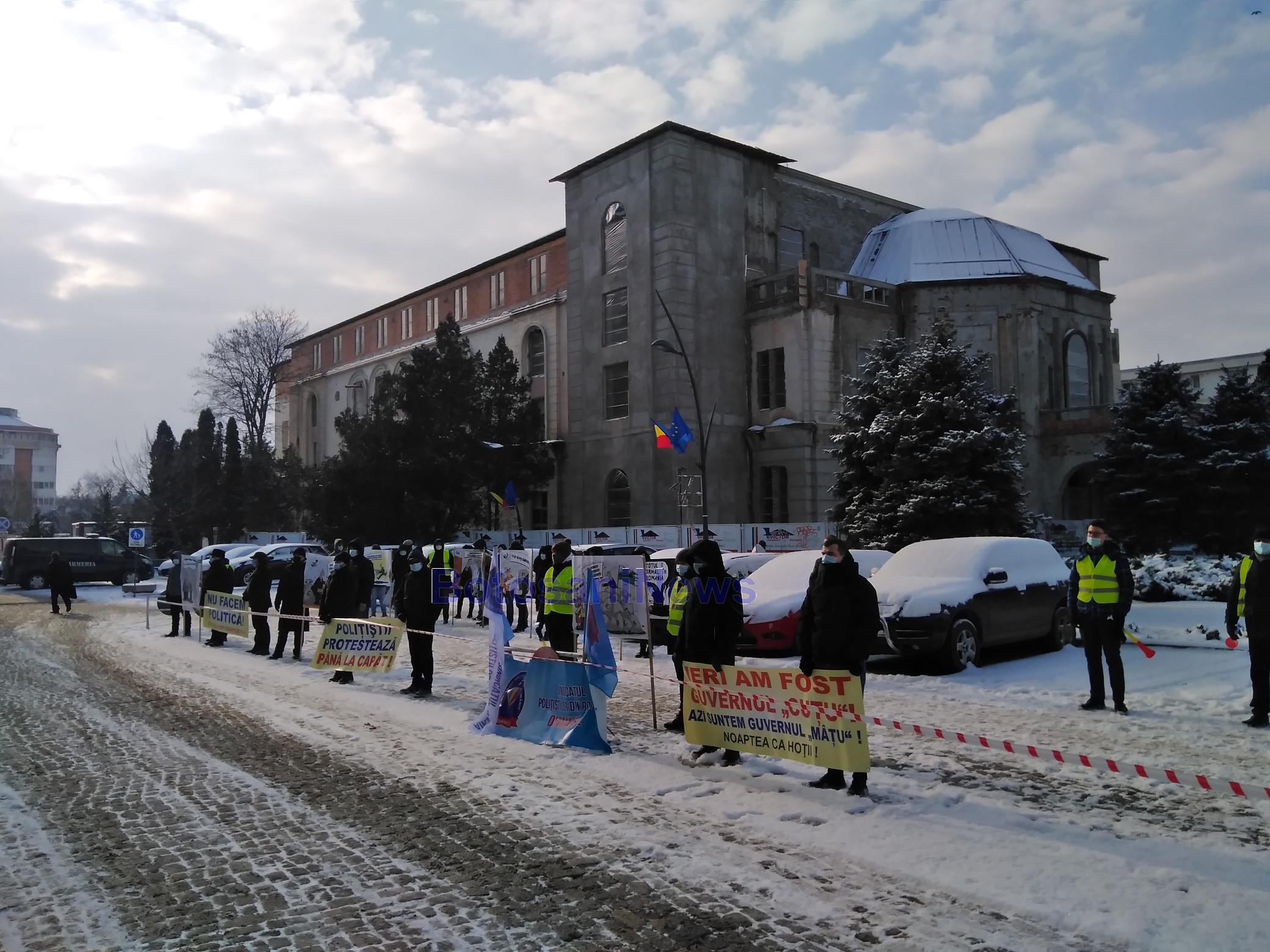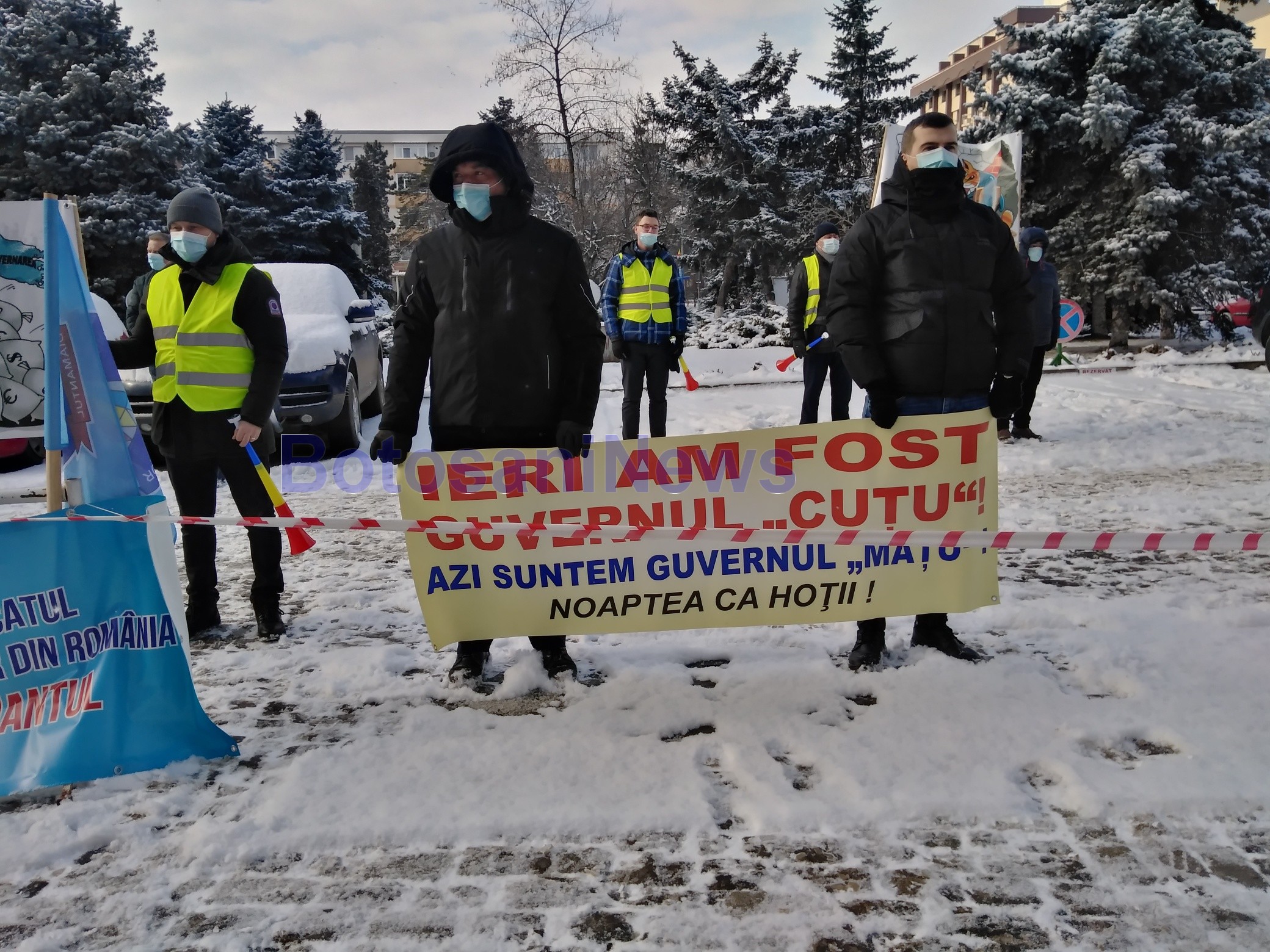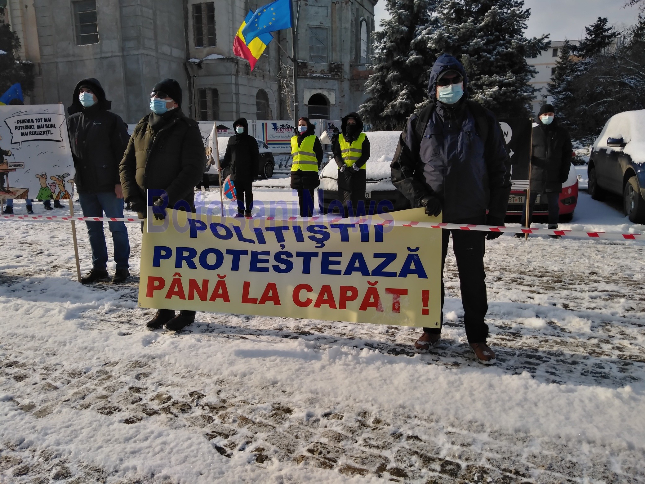 Zeci de polițiști au protestat, luni, din nou în fața Prefecturii Botoșani, nemulțumiți de decizia guvernanților privind înghețarea salariilor. Acțiunea a fost organizată de Sindicatul Diamantul Botosani.