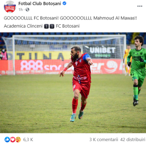 Al Mawas a marcat primul gol pentru FC Botoșani în partida cu Academica Clinceni, iar fanii săi din Siria au luat cu asalt pagina oficială de Facebook a clubului.