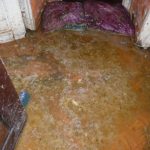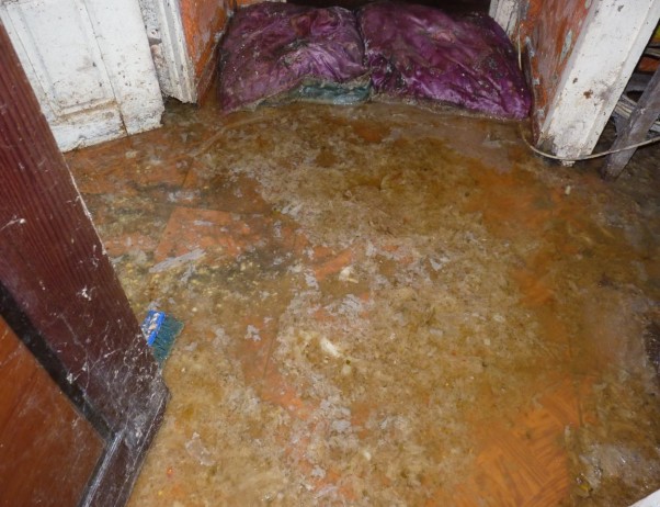 Mai mult într-o garsonieră, proprietarul a adus modificări la coloana de apă menajeră de la baie, iar apa provenită din coloana cu dejecții, inundând locuința, dar și holul comun al imobilului.
