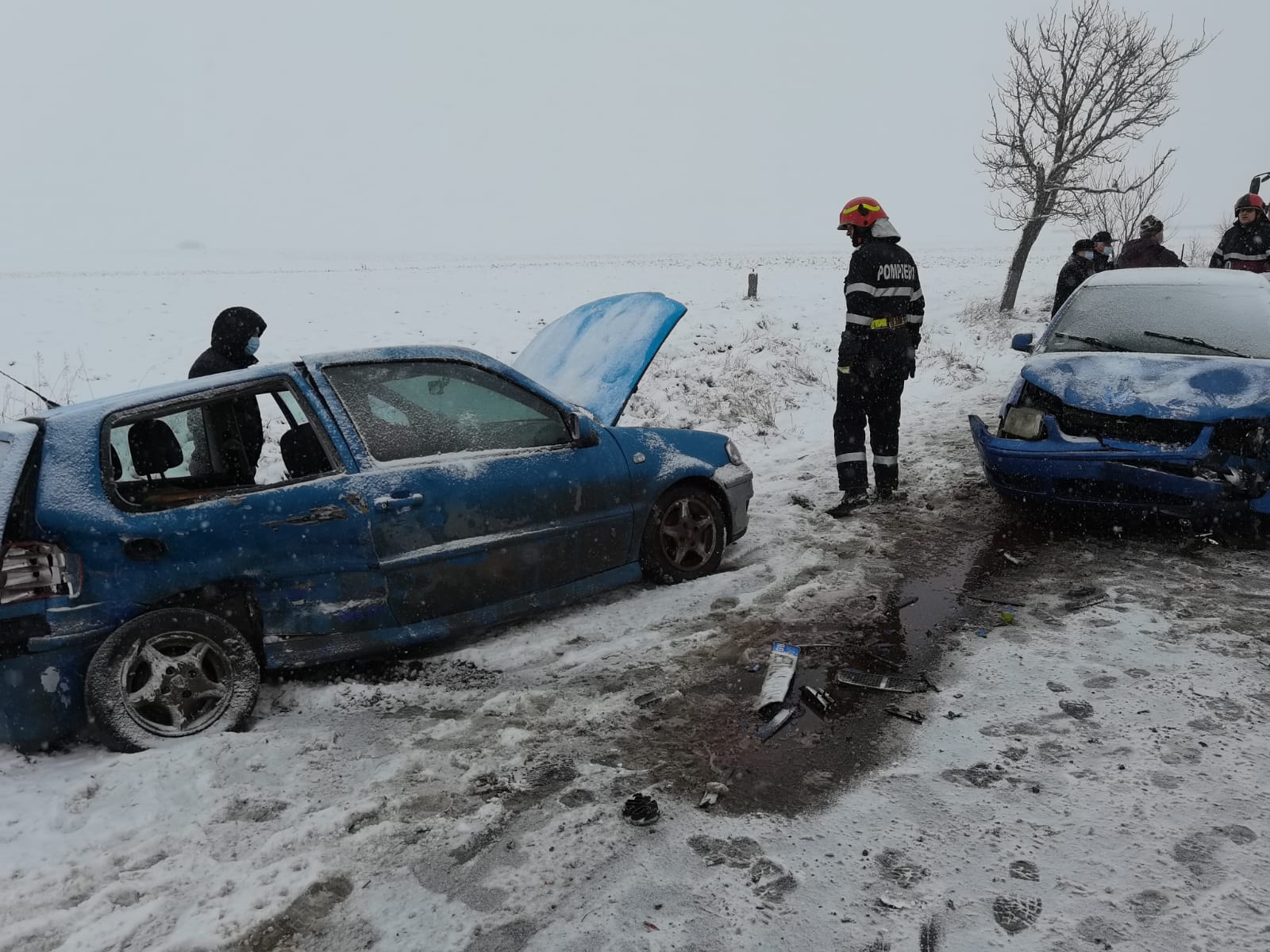 Din primele informații, o femeie aflată la volanul unui VW a pierdut controlul volanului, a intrat pe contrasens și s-a izbit într-un alt autoturism.