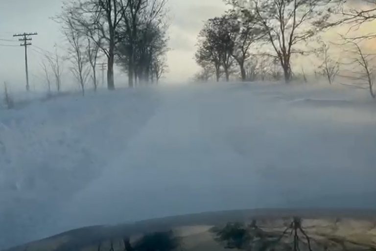 VIDEO Imagini incredibile pe un drum național din Botoșani. Din cauza viscolului, șoferii nu văd nici măcar la câțiva metri în față