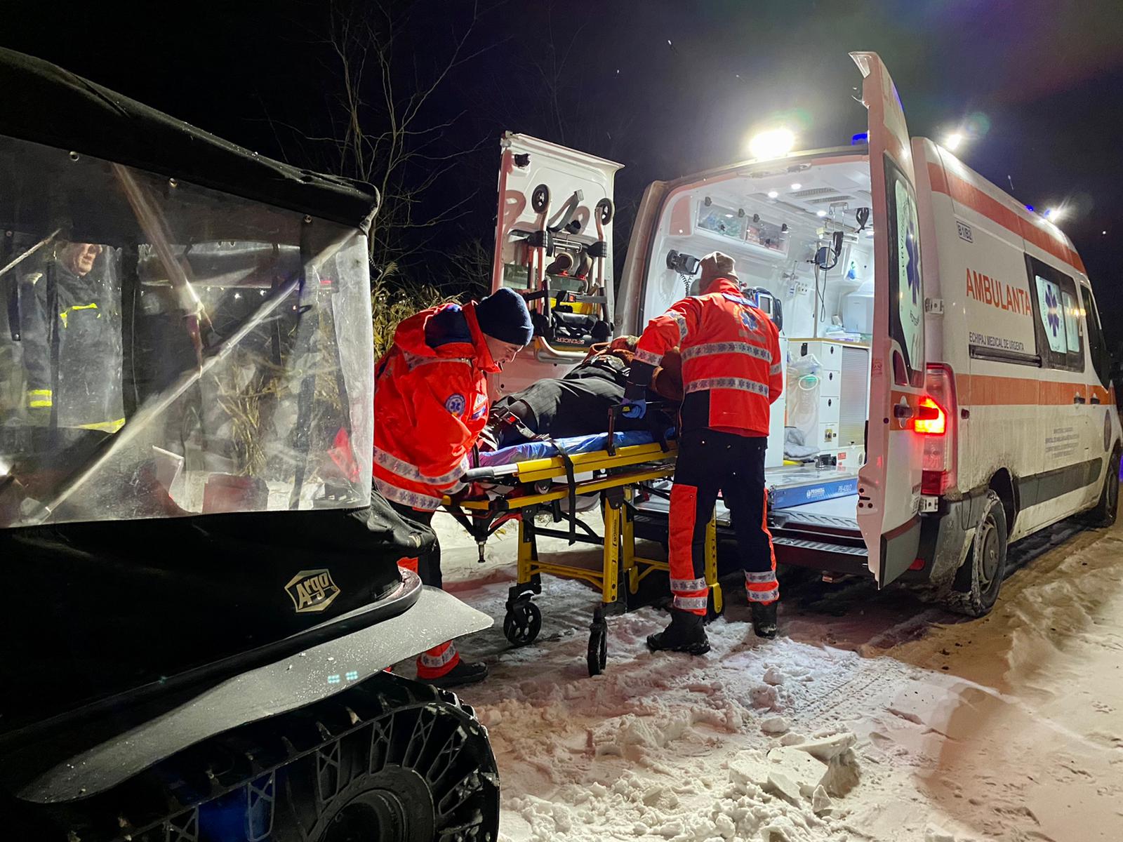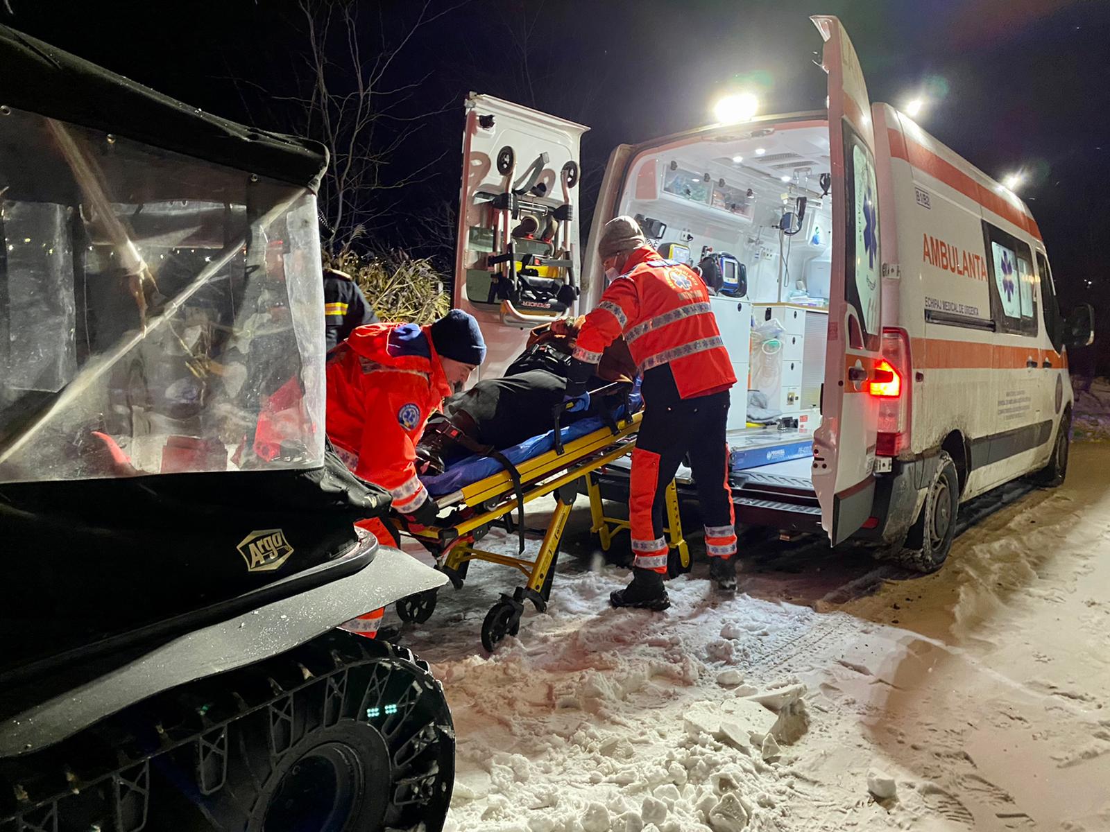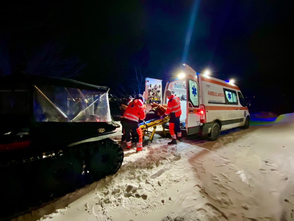 Echipajul Serviciului Județean de Ambulanta nu a reușit sa ajungă la casa femeii din cauza stratului de zăpadă care face că zona să fie una foarte greu accesibilă circulației auto. Întrucât femeia nu se putea deplasa singură, drumul de la ambulanta până la locuința acesteia a fost parcurs cu ajutorul senilatei din dotarea Detașamentului de Pompieri Dorohoi.