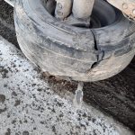 Camionul s-a răsturnat în urma exploziei unui pneu.