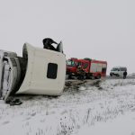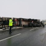 „Intervin pompierii militari cu o autospeciala cu accesorii pentru descarcerare. Traficul este partial blocat, in sensul ca pot circula vehiculele mici, pe o parte din banda si din acostament. S-au solicitat utilaje, pentru indepartarea autotrenului si eliberarea in totalitate a traficului rutier”, spun reprezentanții ISU Suceava.