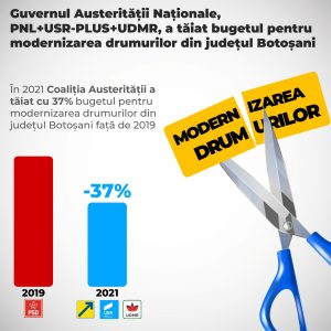 „Îi rog pe toți parlamentarii botoșăneni să semneze amendamentele depuse de PSD și să ceară propriilor miniștri să nu taie bugetul alocat investițiilor pentru drumurile din Botoșani. Noi susținem toate proiectele importante pentru județ și ne interesează să oferim condiții mai bune de trai pentru toți botoșănenii. Ajunge cu politica de austeritate, oamenii au nevoie să vadă că viața lor se îmbunătățește de la an la an”, a completat deputatul PSD Botoșani.