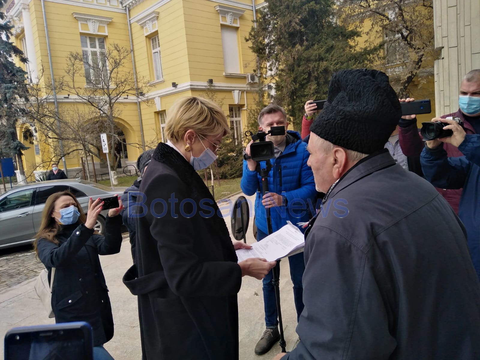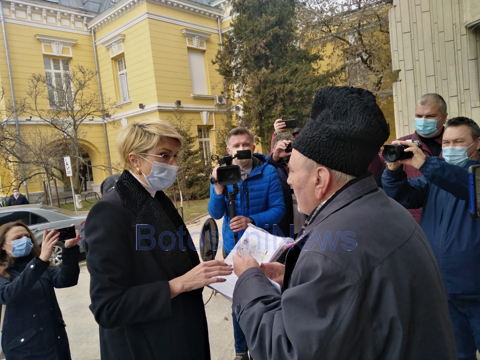 Ministrul Muncii, Raluca Turcan, a fost întâmpinată, vineri, în fața Prefecturii de un pensionar. Acesta s-a plâns că pensia este mică și nu îi ajunge să plătească utilitățile și medicamentele. Pensionarul i-a cerut ministrului recalcularea pensiei de handicap.