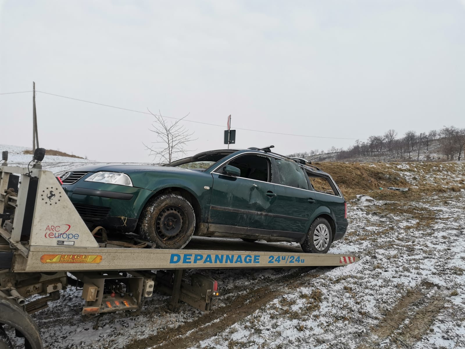 O femeie s-a răsturnat, joi dimineață, pe drumul comunal care duce la Ipotești. Ea conducea un autoturism Volkswagen dinspre Botoșani spre Ipotești, iar în curbele succesive de la intrarea în localitatea Ipotești a pierdut controlul asupra direcției de mers, a ieșit de pe carosabil și s-a dat cu mașina peste cap.