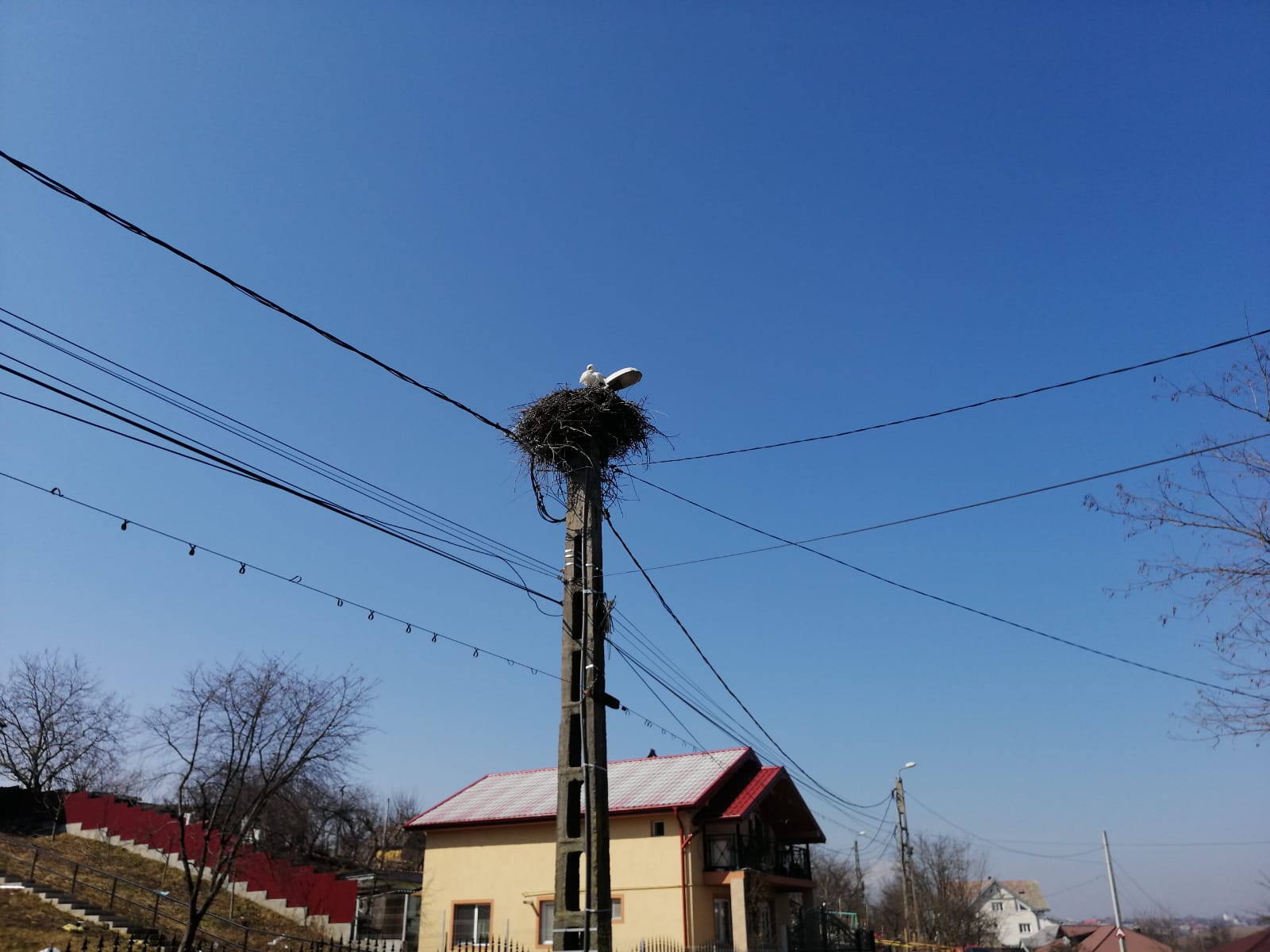FOTO A apărut primul vestitor al primăverii la Botoșani! Prima barză care s-a întors la cuib