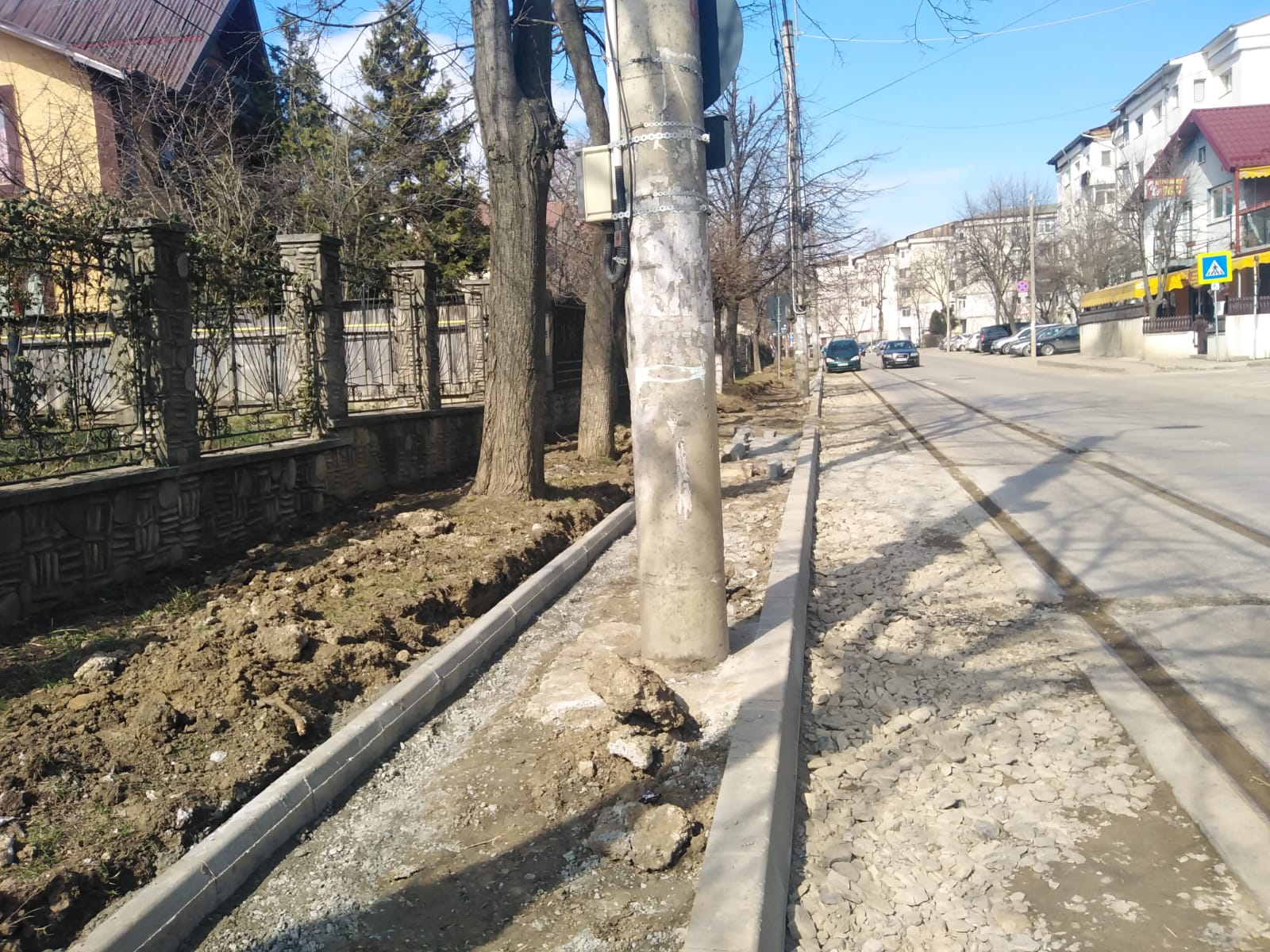 Municipalitatea construiește trotuare noi pe porțiunea de stradă cuprinsă între Mihail Kogălniceanu și Bucovina, însă acestea nu vor putea fi folosite de vreo mamă care iese la plimbare cu copilul în cărucior sau de vreo persoană cu handicap.