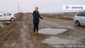 Ironie la adresa autorităților din Botoșani pe tema administrării drumurilor. O tânără româncă îi învață pe internauți să numere în limba germană cu ajutorul gropilor de pe șosea, potrivit Digi24.
