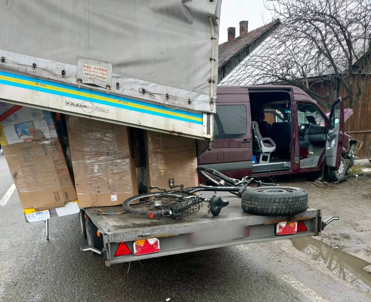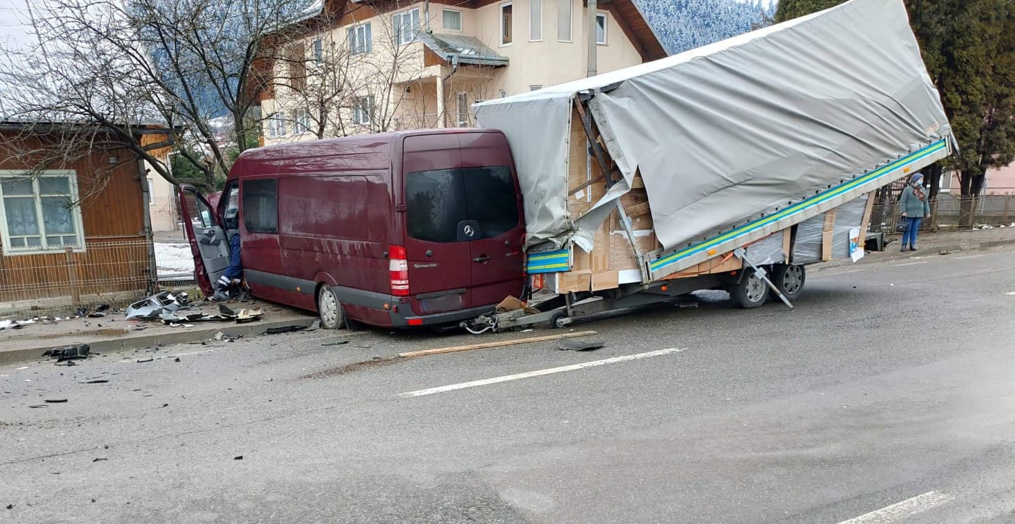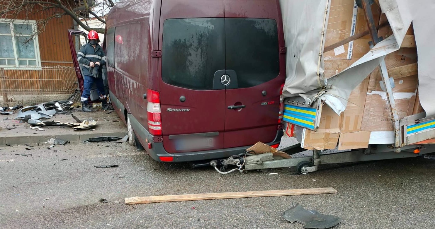 În urma coliziunii dintre un microbuz de transport marfă, cu remorcă, și un autoturism, au rezultat două persoane care au necesitat îngrijiri medicale. Ulterior, cele două victime, conștiente și cooperante, au fost transportate la spital, pentru investigații suplimentare.