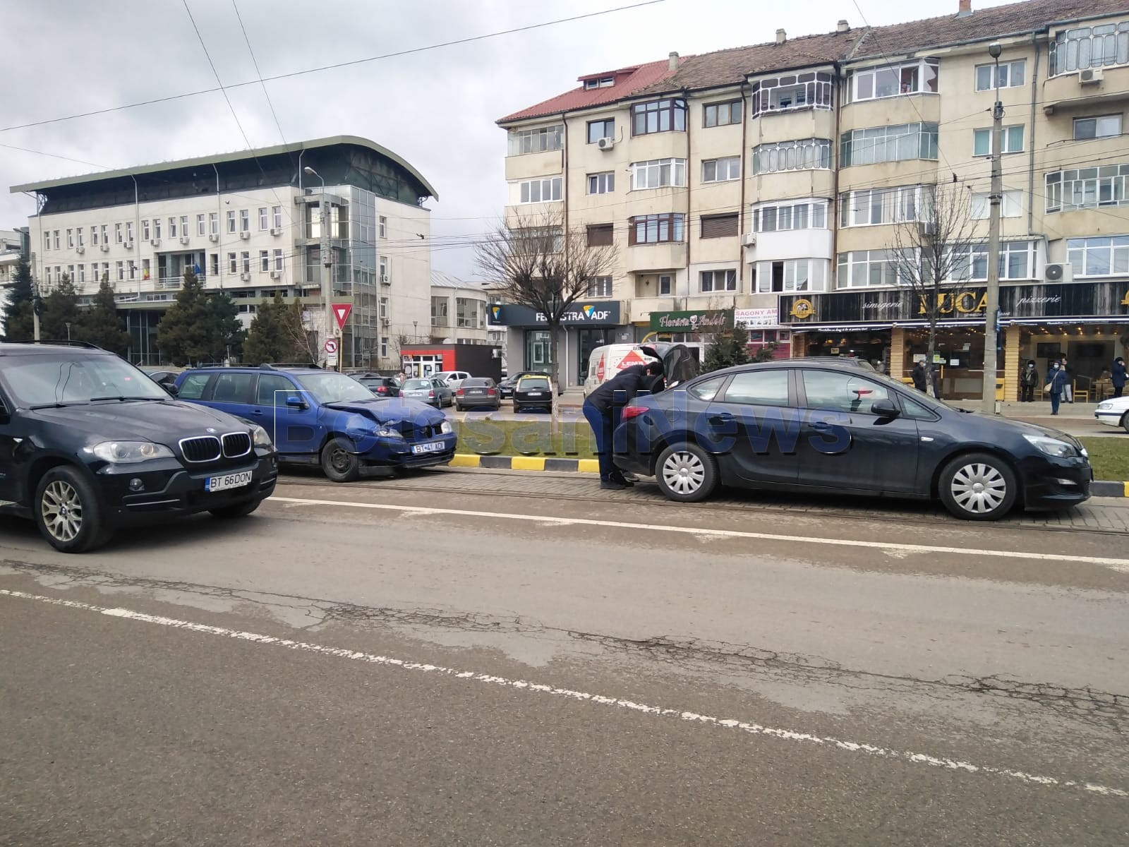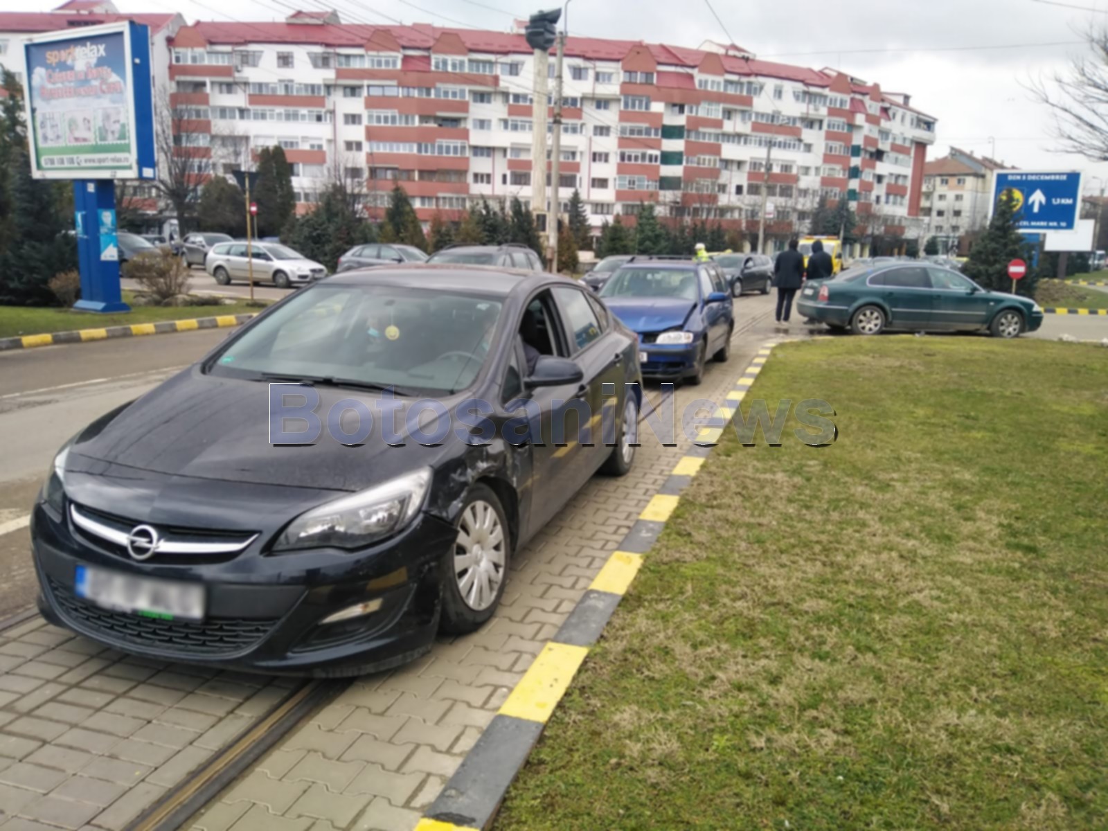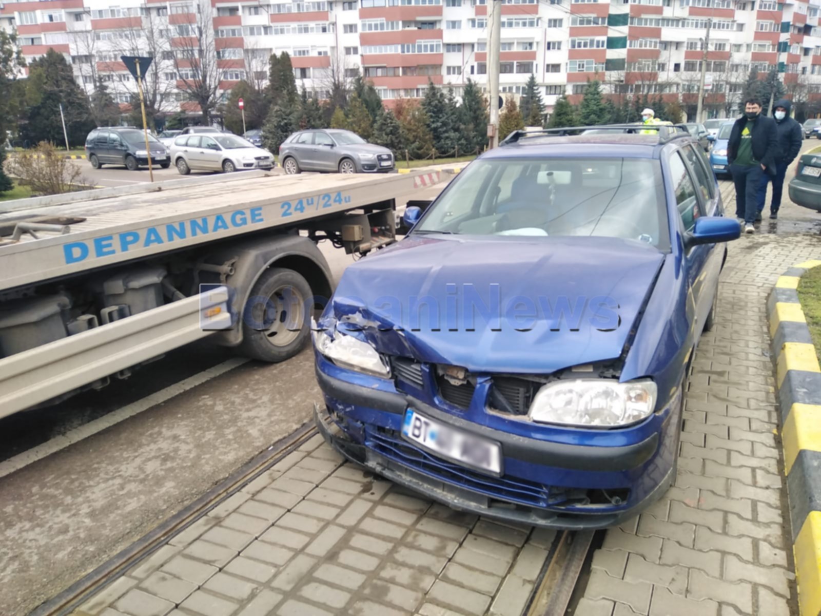 Un accident rutier a avut loc, marți după-amiază, într-o intersecție din municipiul Botoșani. Un șofer care circula cu mașina de pe strada Cuza Vodă spre Calea Națională, a făcut la stânga, iar șoferul de pe banda a doua i-a făcut semn să treacă, însă pe linia de tramvai venea un alt șofer, care nu a observat și s-a izbit în el.