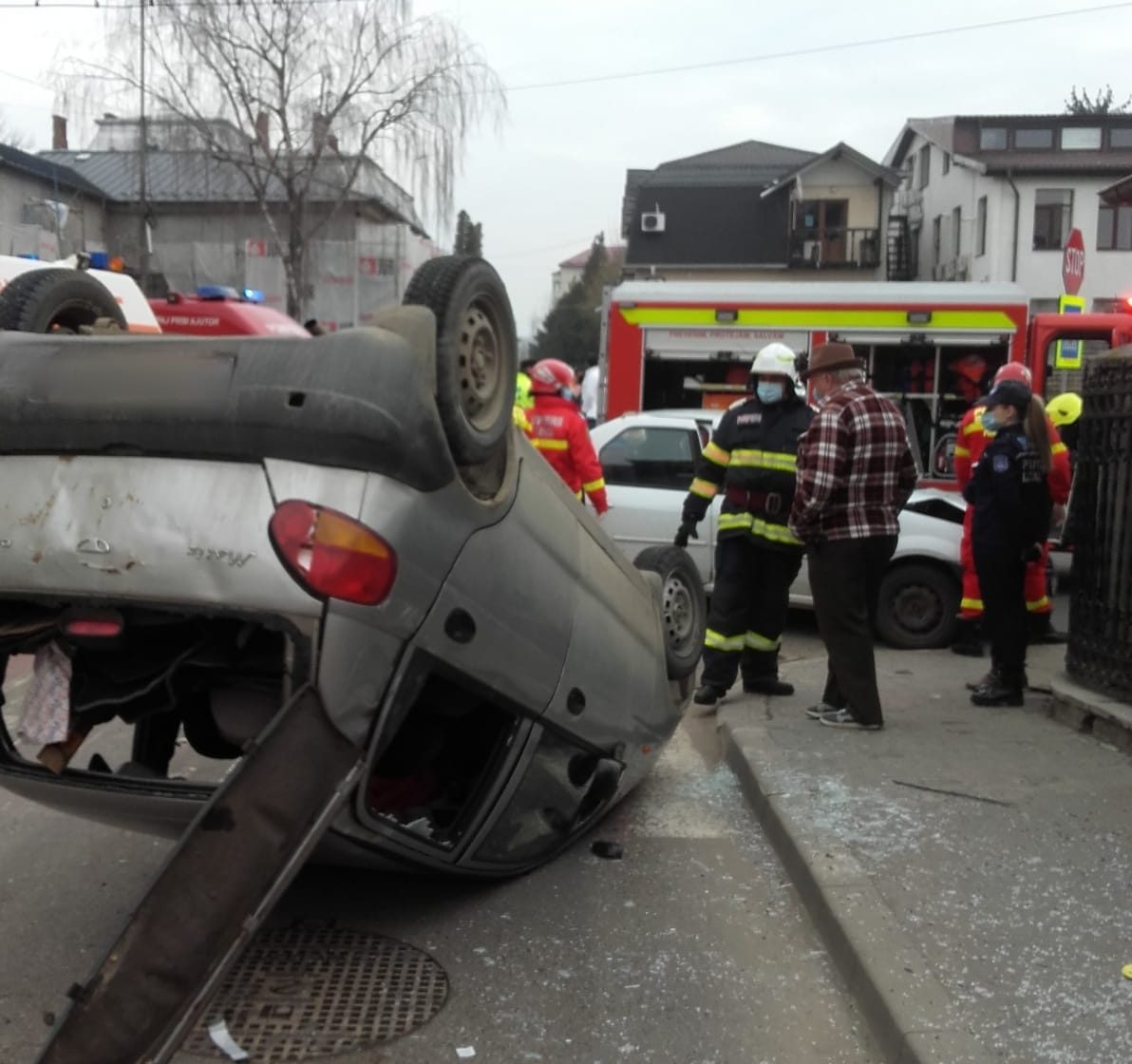 FOTO Accident cu două mașini! Una a ajuns cu roțile în sus