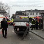 Un accident rutier cu două autoturisme a avut loc, miercuri dimineață, pe strada Nicu Gane din municipiul Fălticeni, județul Suceava, Cele două mașini s-au izbit violent, apoi una s-a răsturnat.