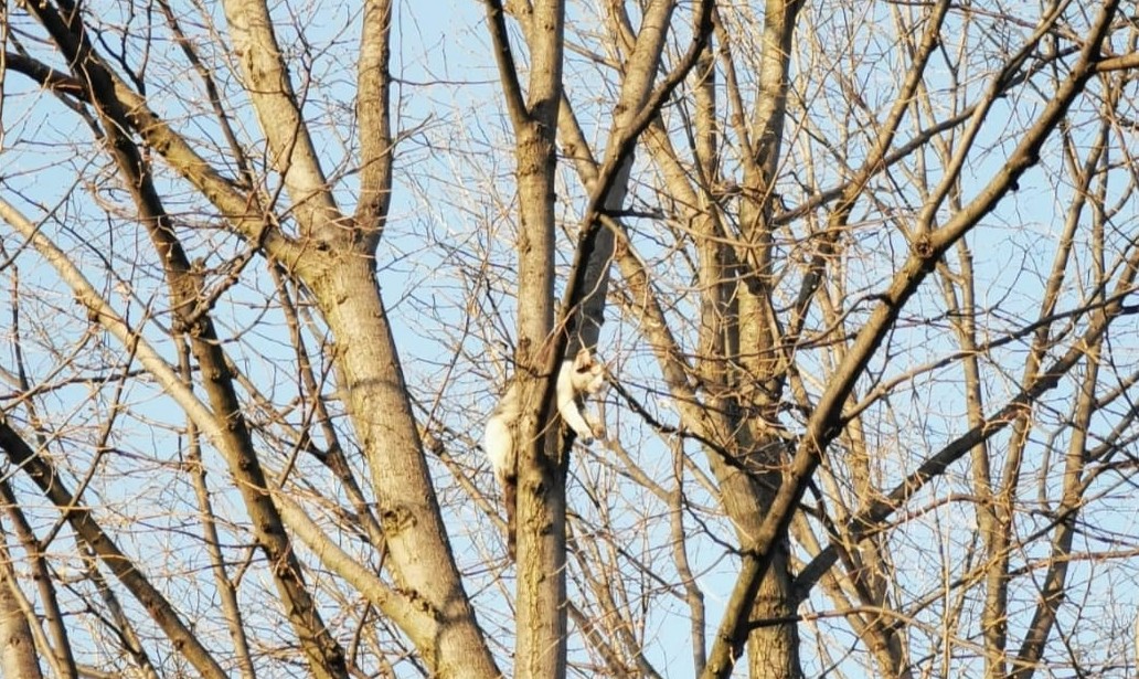 Pompierii din Botoșani au avut, joi, o misiune specială, ei fiind apelați pentru a interveni în cazul unei pisici blocate într-un copac. Mica felină a rămas captivă între crengile unui arbore din incinta Secției de pediatrie a Spitalului Județean de Urgență Mavromati.Un angajat al spitalului a cerut ajutorul pompierilor, după ce a auzit animalul că miaună şi şi-a dat seama că nu poate să coboare din copacul înalt de circa 15 metri.