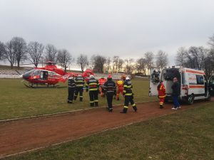 Elicopterul SMURD a aterizat la stadionul Dorohoi pentru a o prelua pe pacientă.