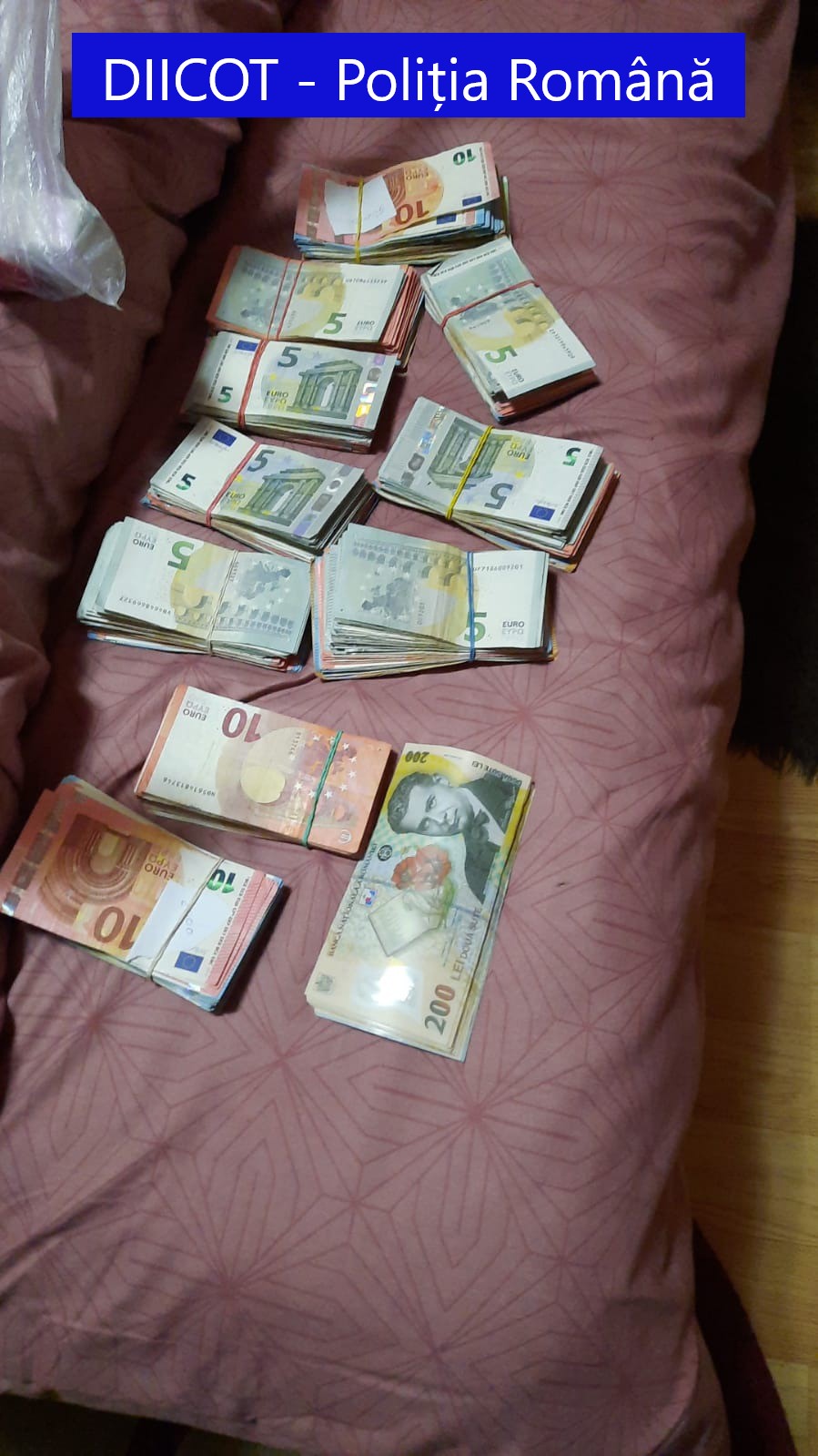 În aceeași zi, procurorii Direcției de Investigare a Infracțiunilor de Criminalitate Organizată și Terorism – Serviciul Teritorial Galați împreună cu ofițeri de poliție judiciară din cadrul BCCO Galați au efectuat un număr de 43 de percheziții domiciliare, pe raza județelor Iași, Ialomița, Vrancea, Galați, Botoșani, Ilfov, Suceava și a municipiului București, în urma cărora au fost ridicate 21.063 de pachete de țigarete de diferite mărci, 200 de grame de cannabis, 1 kg. de bijuterii, 38 de telefoane mobile, sumele de 41.210 lei și 57.200 de euro și 32 de pachete cu materiale explozibile.