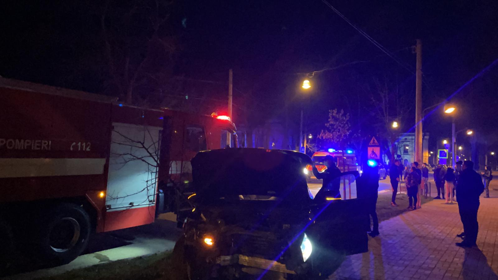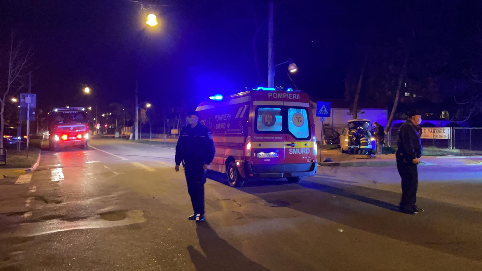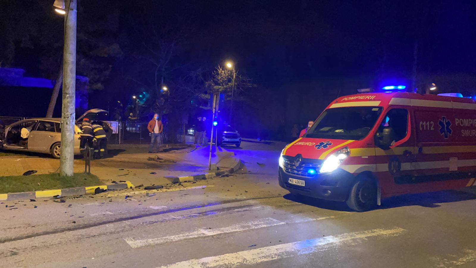 Un autoturism care urca pe strada Mihai Kogălniceanu nu a acordat prioritate unei alte mașini care circula pe Bulevardul Mihai Eminescu, intrând în coliziune cu aceasta. După impact, mașina care circula regulamentar a fost proiectată pe trecerea de pietoni lovind o persoană care traversa strada.