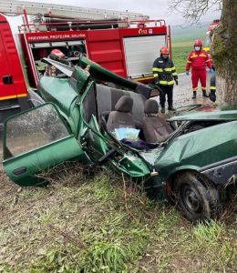Mașina a ieșit de pe carosabil, s-a izbit violent de un copac aflat pe marginea drumului, iar o femeie a decedat din cauza traumatismelor suferite.