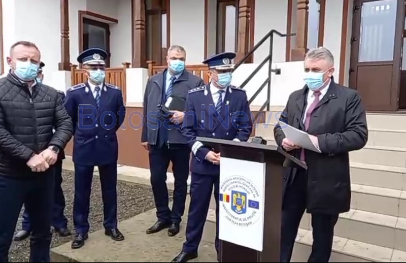 ”Investiția în sediul Poliției Dorohoi, așa cum a fost ea prezentată aici, a fost demarată în 2017, valoarea ei fiind de aproximativ 800 mii eruro. Lucrările de modernizare a sediului și a împrejurimii arată așa cum trebuie să arate un sediu de poliție în România anului 2021. Vreau să spun și aici faptul că îmbunătățirea condițiilor de muncă pentru angajații din structurile MAI reprezintă o prioritate pentru mandatul meu . Și poate ați auzit această afirmație de mai multe ori. Eu o prezint aici, în fața dumneavoastră , cu argumente, pentru că așa cum ați văzut în construcția bugetară pentru anul 2021, am ținut cont de aceste vulnerabilități, eu le numesc vulnerabilități ale sistemului de ordine publică, faptul că avem în continuare mii, peste 1000 de posturi de poliție cu toaleta în fundul curții. Este o vulnerabilitate pentru Poliția Română”, a spus ministrul Lucian Bode.
