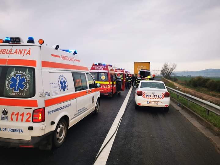 Un grav accident rutier a avut loc vineri, pe A1 pe sensul Sebeş-Simeria. Un microbuz intrat în coliziune cu partea din spate a unui autotren. Şase din cei 7 pasageri ai microbuzului au ieşit singuri din mijlocul de transport în comun, în timp ce, unul dintre pasageri a fost extras din maşină de echipa de la descarcerare. Persoana încarcerată a fost stabilizată şi transportată la UPU Deva în stare de conştienţă.