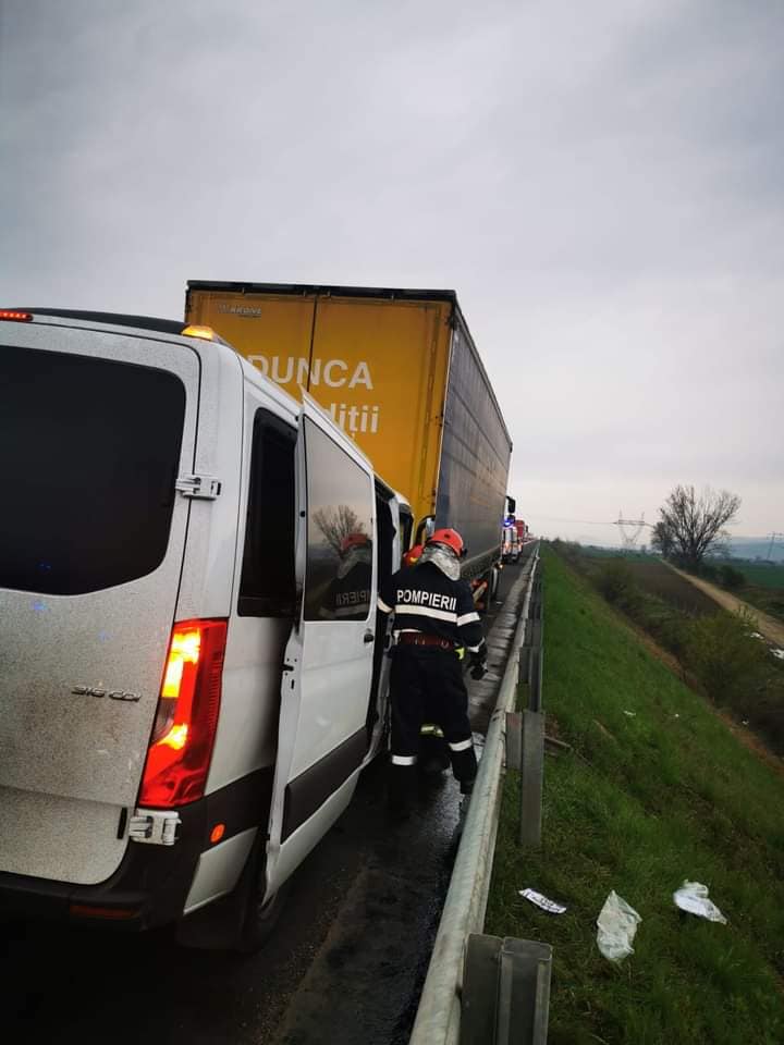 Până la finalizarea cercetării la locul accidentului circulatia pe A1 pe sensul Sebeş-Simeria a fost restricţionat pe o bandă.