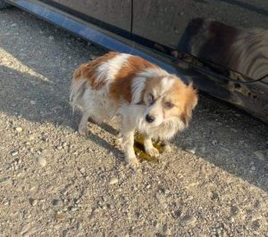 Noroc că un bărbat a dat la timp de el și l-a salvat. El a văzut cum ceva se zbătea în sac și și-a dat seama că este un animal. Acesta a postat imaginile cu animalul chinuit pe rețelele de socializare. Cățelul pare să aibă un ochi scos.