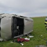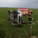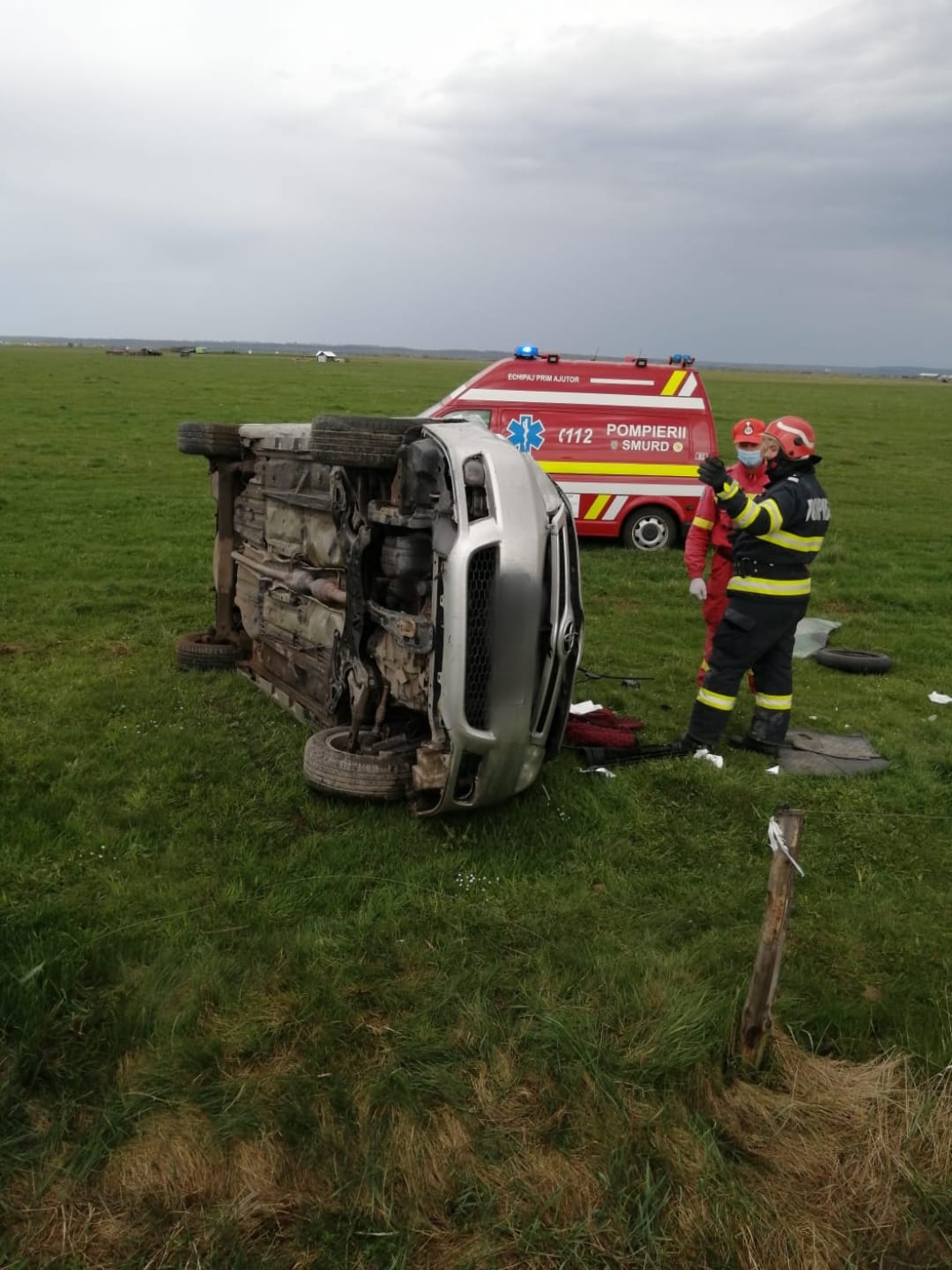 FOTO Accident violent între două mașini! Una s-a răsturnat după impact