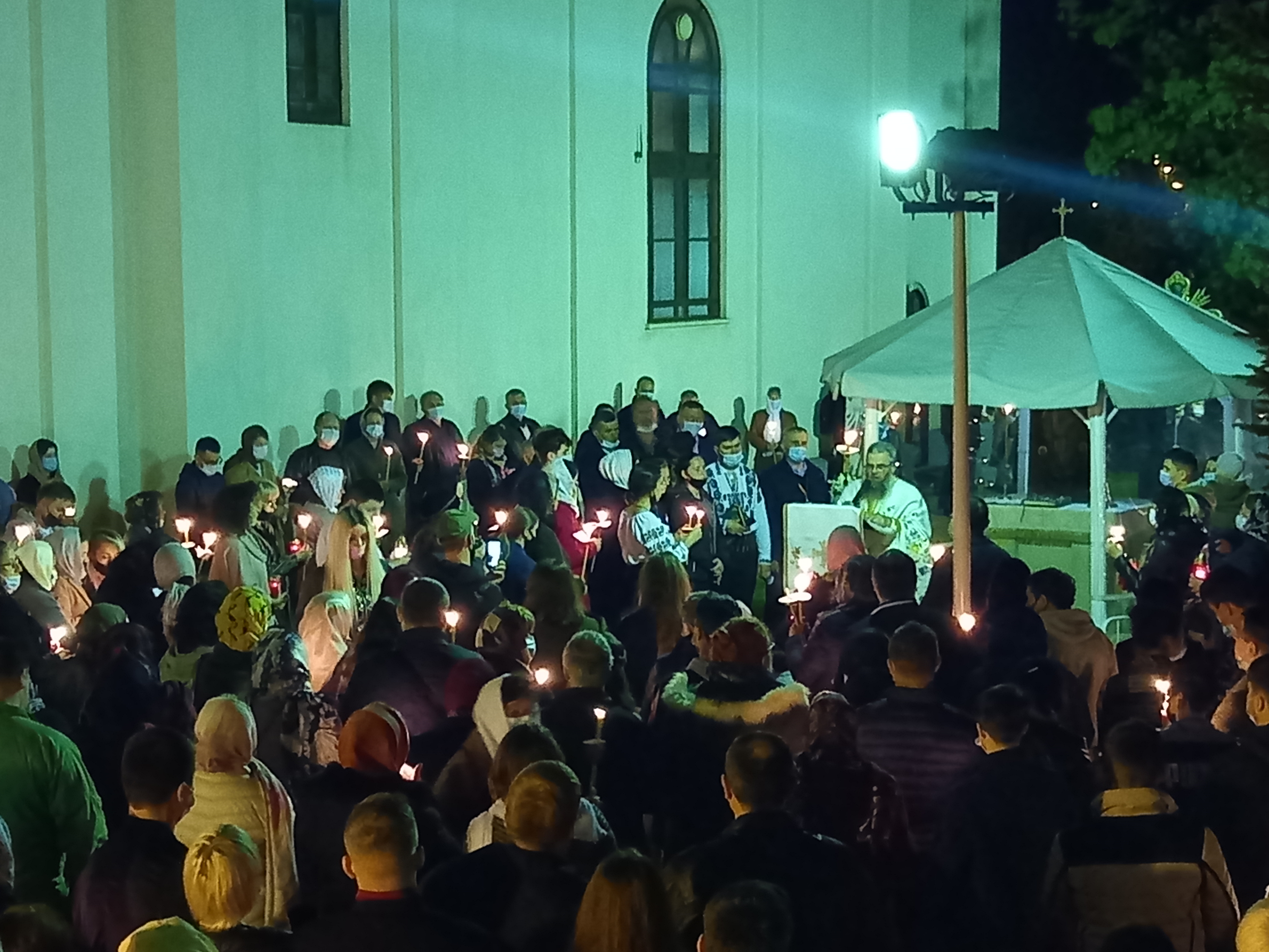 La Biserica „Sfântul Ioan Botezătorul”, părintele protopop Petru Fercal a slujit dintr-un cort amenajat special din cauza restricțiilor impuse de COVID-19. Acesta i-a îndemnat pe credincioși la rugăciune.