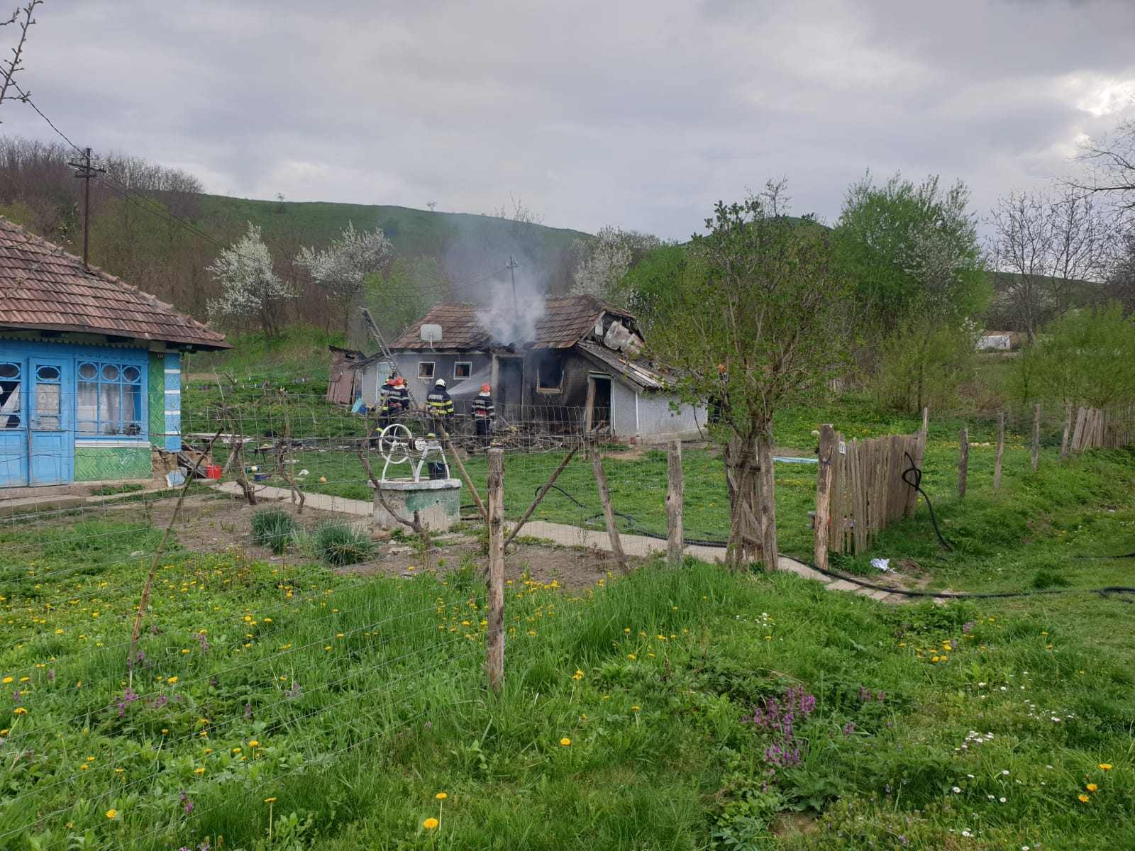 Speriați că flăcările s-ar putea extinde la întreaga locuință, dar și la o altă casă din apropiere, vecinii au solicitat sprijinul pompierilor.