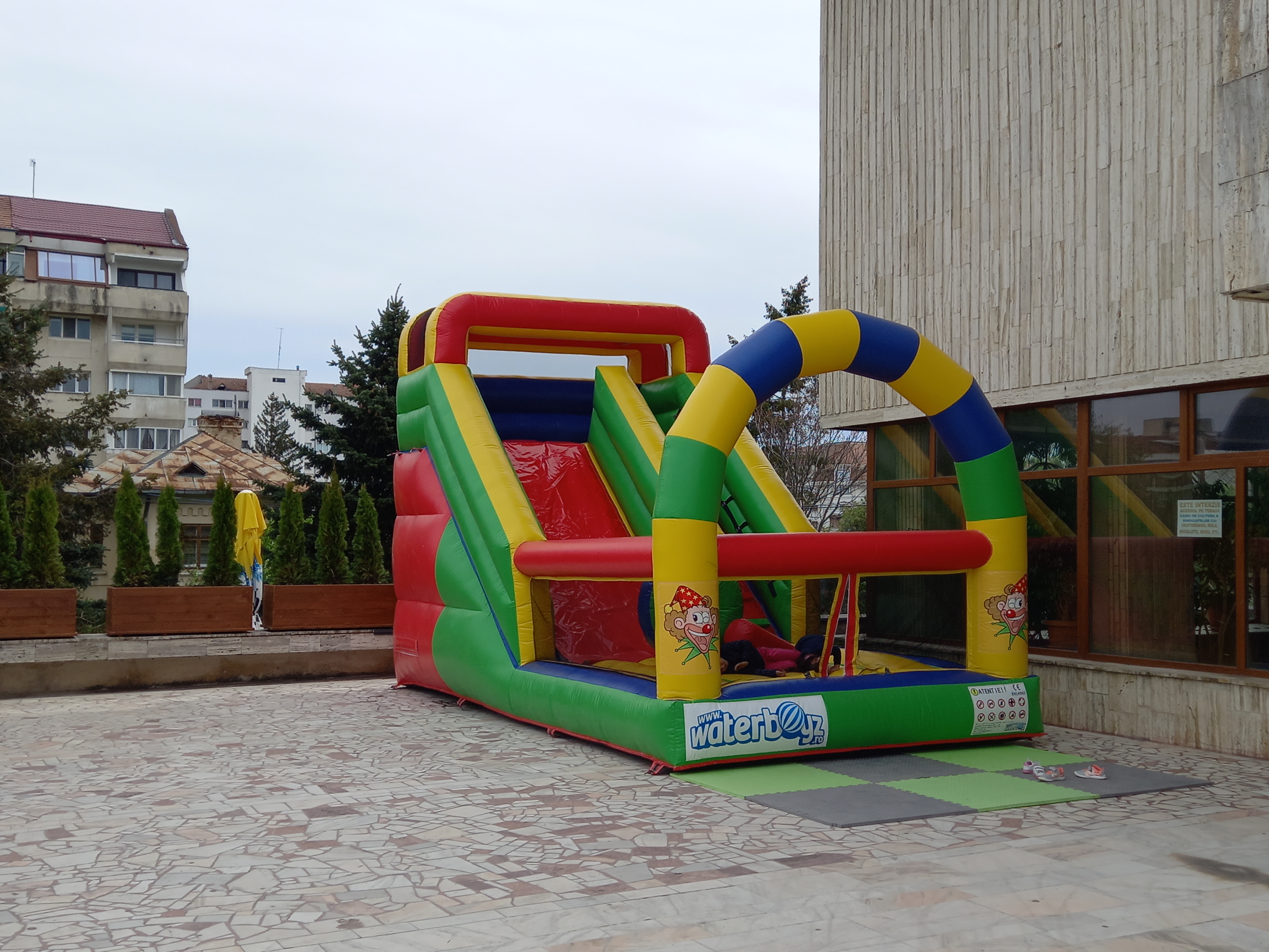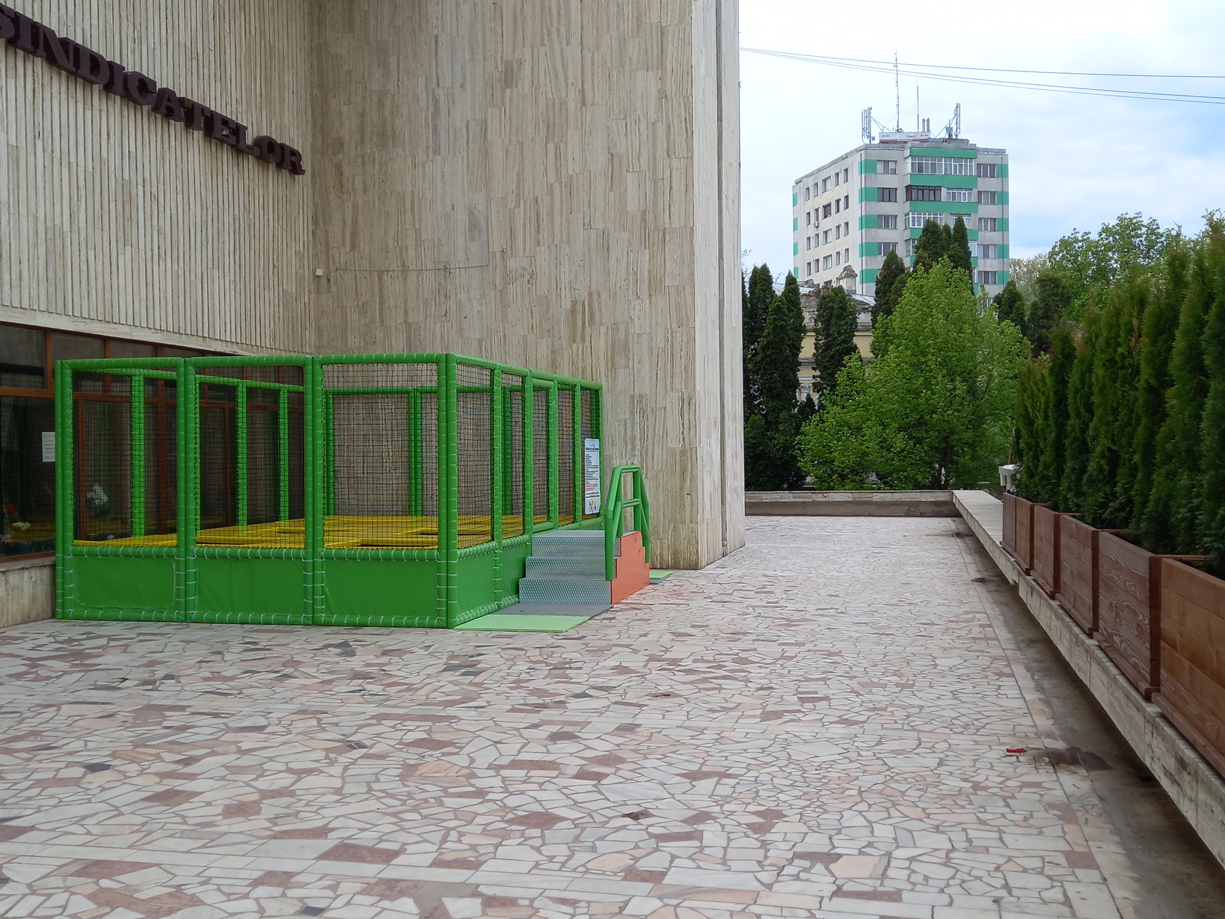 Terasa situată ultracentral dispune de spații de joacă pentru copiii care îi însoțesc pe adulții care stau la masă. Accesul la toboganul gonflabil și o trambulină este gratuit.