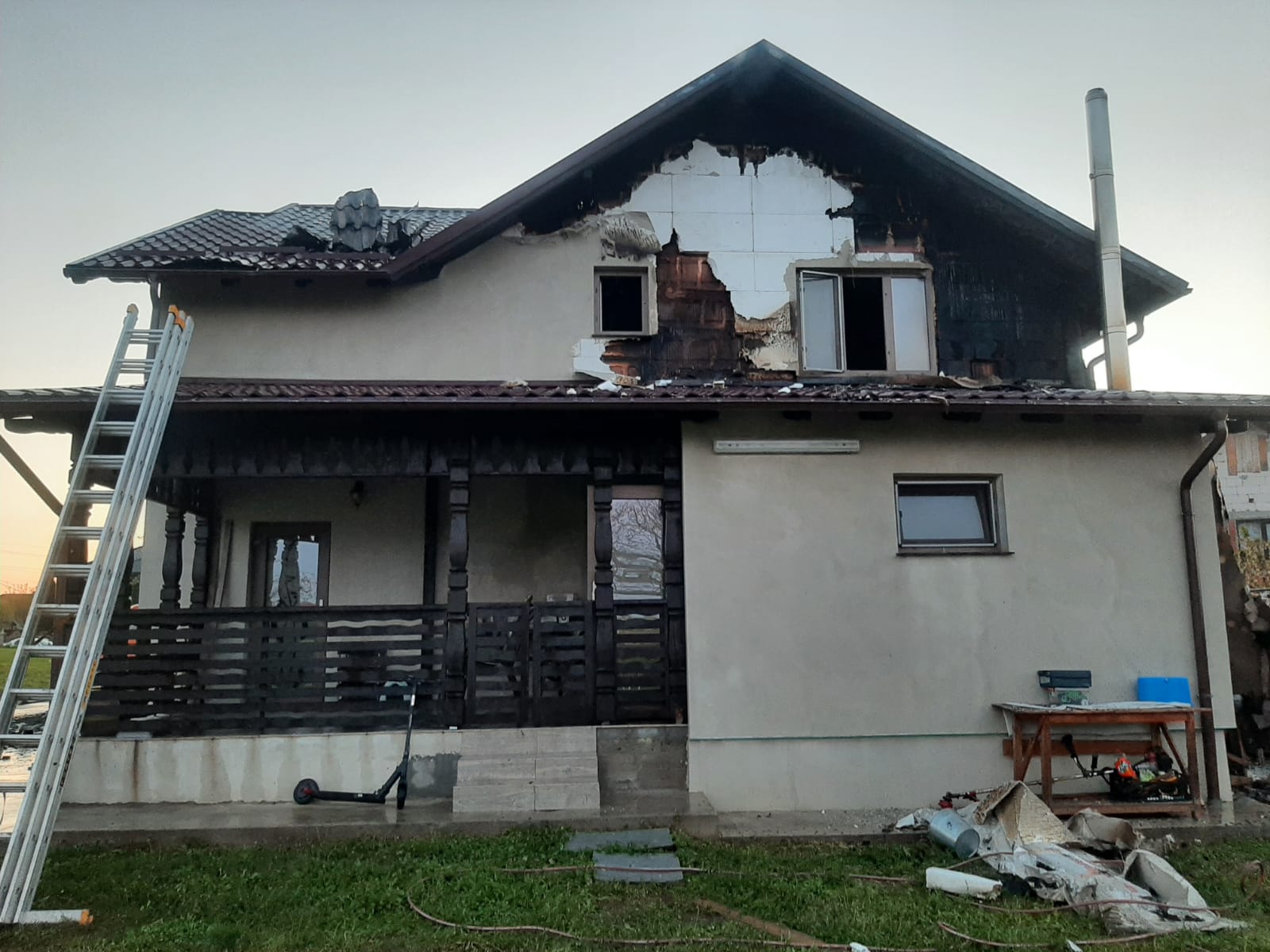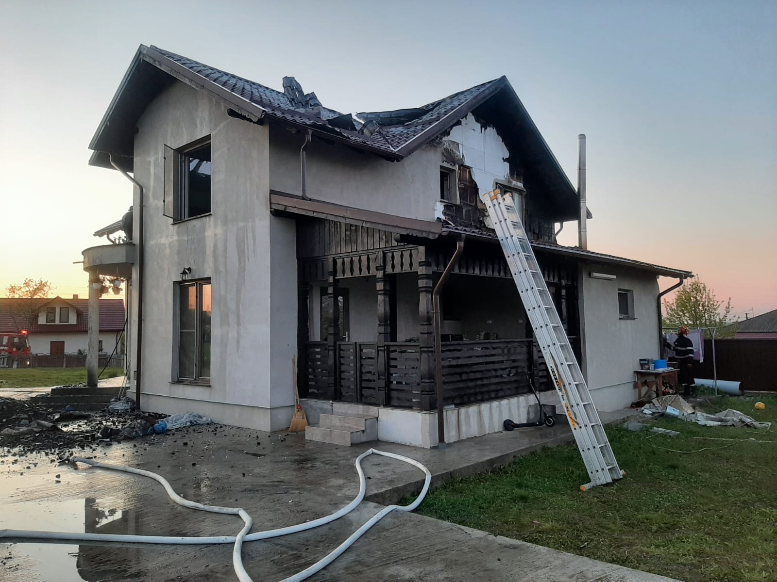 La sosirea forțelor de intervenție, ardeau astereala și elementele de susținere a acoperișului, existând pericolul de propagare a flăcărilor la camerele de la mansardă.