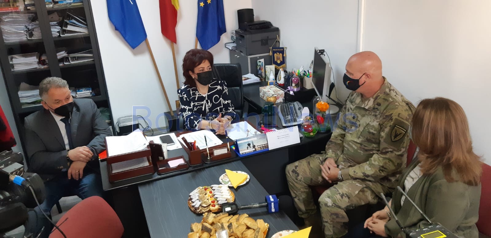 Reprezentantul armatei SUA, lt. col. Bradford Stark, alături de un reprezentant al Ambasadei SUA în România, s-a întâlnit cu prefectul Dan Nechifor și directorul Direcției de Sănătate Publică Botoșani, medicul Monica Adăscăliței.