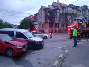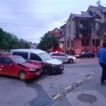 Două mașini s-au ciocnit, miercuri seară, în intersecția dintre străzile Victoriei și Ion Pillat, în zona Bisericii Sfântul Gheorghe din municipiul Botoșani. Este vorba de un Mercedes cu numere de Hunedoara și de un Volkwagen Caddy.