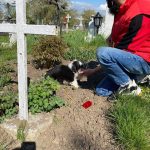 „Am oprit in drumurile noastre prin sate in marginea unui cimitir sa lasam niște mâncare unui caine ce l-am zărit pe drum iar dincolo de gardul cimitirului am văzut acest cățel ce parea bolnav. Un trecător ne a spus ca ar fi fost câinele unei bătrâne ce a murit cu câteva sapatamani in urma și de atunci hoinărește pe străzi. Cred ca ajutorul in cazul lui nu putea sa mai aștepte deoarece era plin de căpușe și babesioza intr o faza destul de avansată și era probabil de zile întregi nemâncat și nebăut. Nu aveam multe speranțe ca va supraviețui însă in urma tratamentului starea lui merge spre bine”, spun reprezentanții Trio.vet.