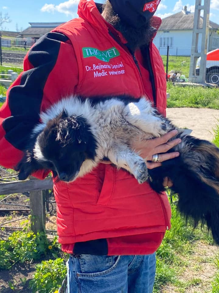 „Am oprit in drumurile noastre prin sate in marginea unui cimitir sa lasam niște mâncare unui caine ce l-am zărit pe drum iar dincolo de gardul cimitirului am văzut acest cățel ce parea bolnav. Un trecător ne a spus ca ar fi fost câinele unei bătrâne ce a murit cu câteva sapatamani in urma și de atunci hoinărește pe străzi. Cred ca ajutorul in cazul lui nu putea sa mai aștepte deoarece era plin de căpușe și babesioza intr o faza destul de avansată și era probabil de zile întregi nemâncat și nebăut. Nu aveam multe speranțe ca va supraviețui însă in urma tratamentului starea lui merge spre bine”, spun reprezentanții Trio.vet.
