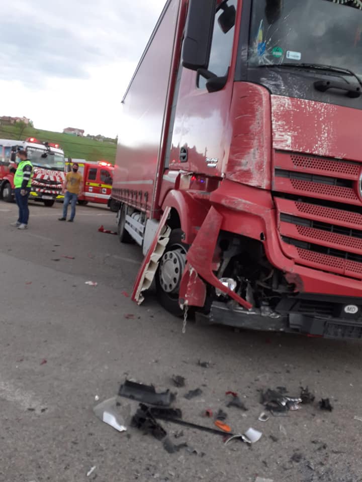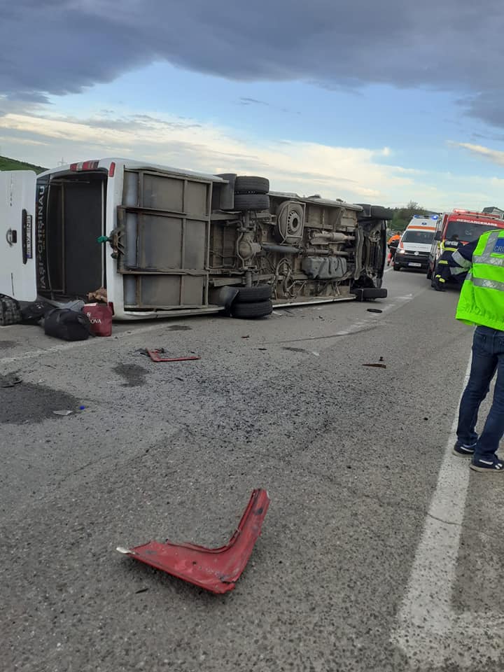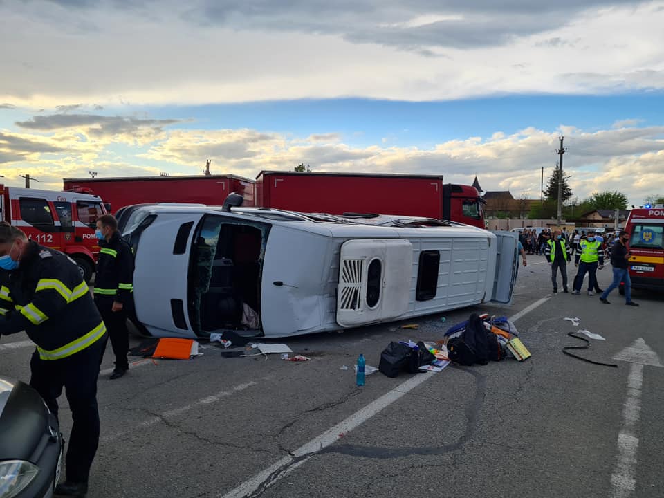Din primele informaţii, se pare că şoferul TIR-ului nu a acordat prioritate, iar microbuzul a lovit partea din dreapta a camionului şi s-a răsturnat.