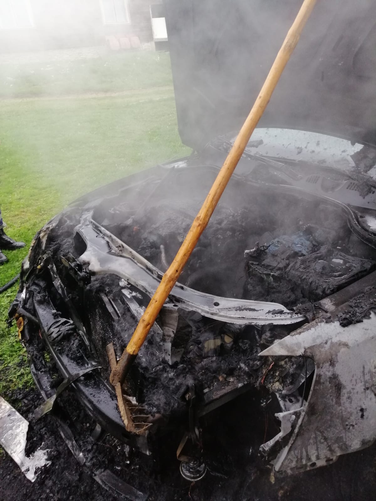 O mașină a luat foc, miercuri, în curtea unei gospodării din municipiul Vatra Dornei. Mașina se afla parcată în curtea unei gospodării.