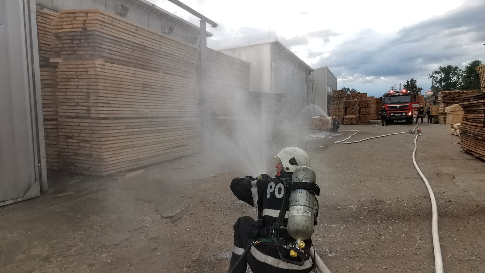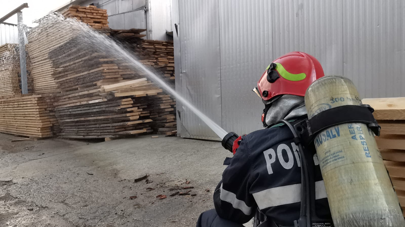 Scenariul presupune producerea unei explozii în interiorul silozului de rumeguș, urmată de un incendiu care se extinde la depozitul de cherestea și uscător.