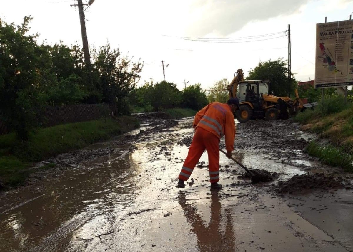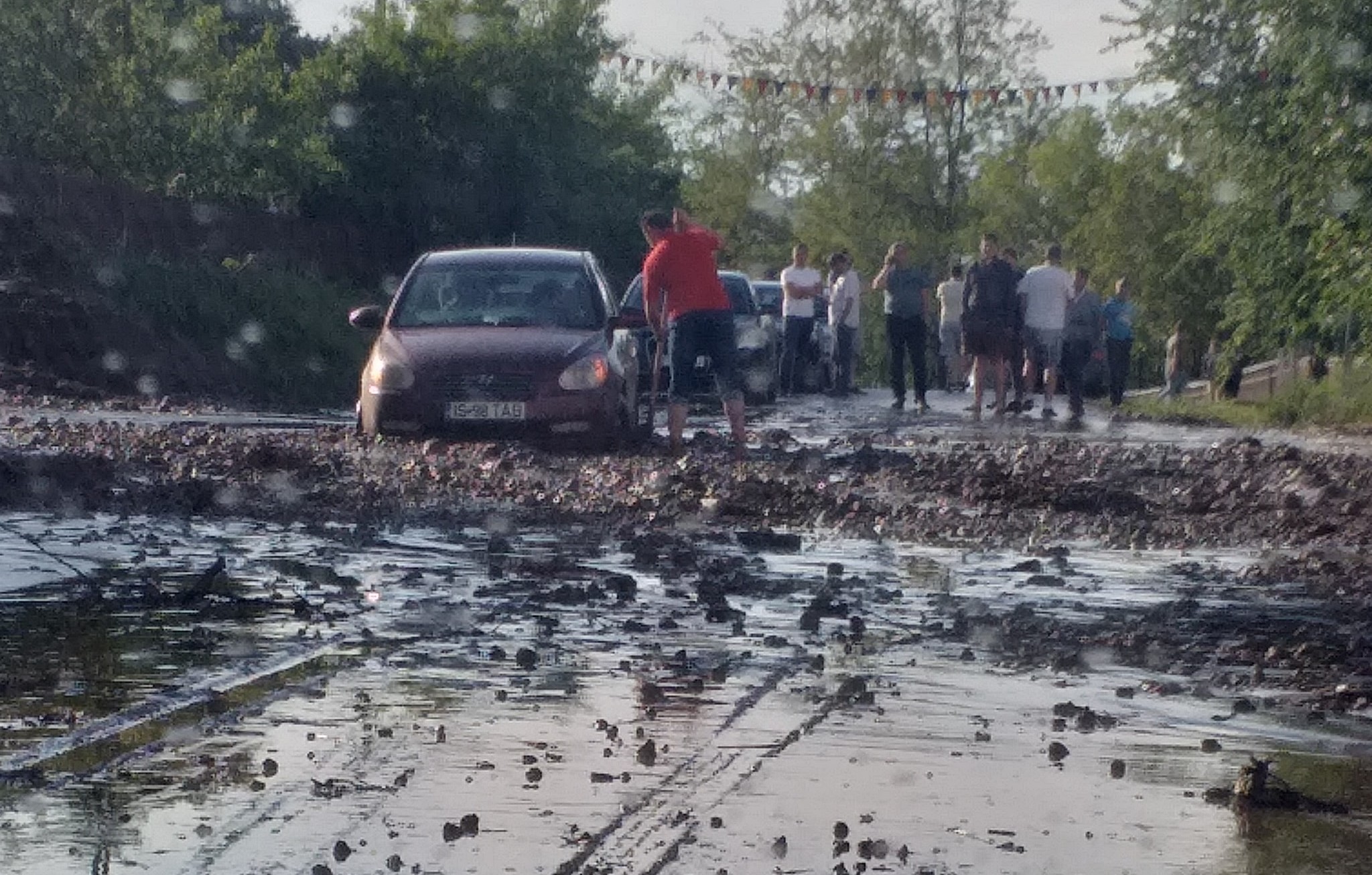 Apa, dar și aluviunile aduse pe asfalt, pământ din câmp, dar și balast de pe drumurile laterale, au făcut ca mai mulți șoferi să fie nevoiți să oprească mașinile, fără să mai poată continua călătoriile. Drumarii au intervenit cu utilaje pentru curățarea drumului.