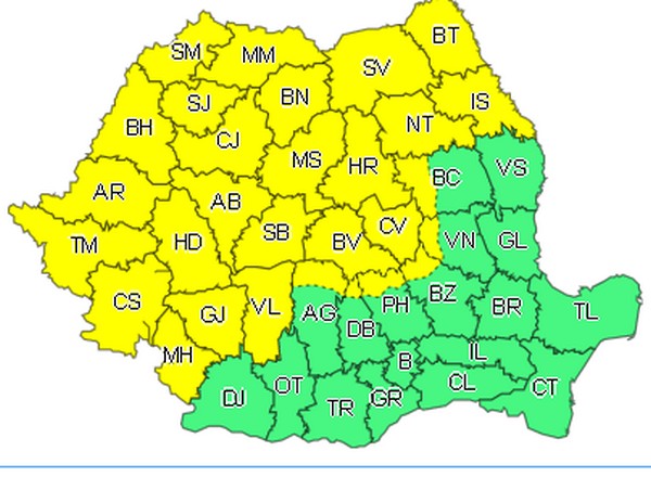 Meteorologii au mai emis și o informare meteo valabilă pentru întreaga țară între 25 mai, ora 15:00 – 27 mai, ora 20:00