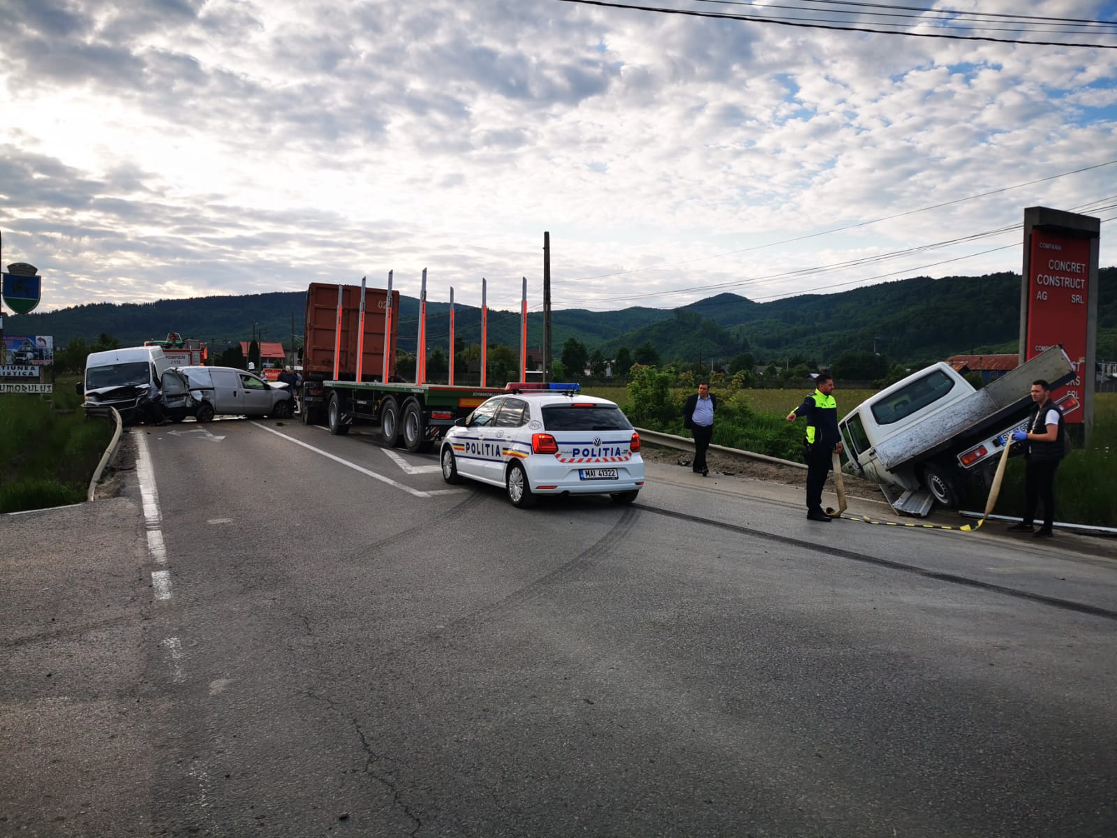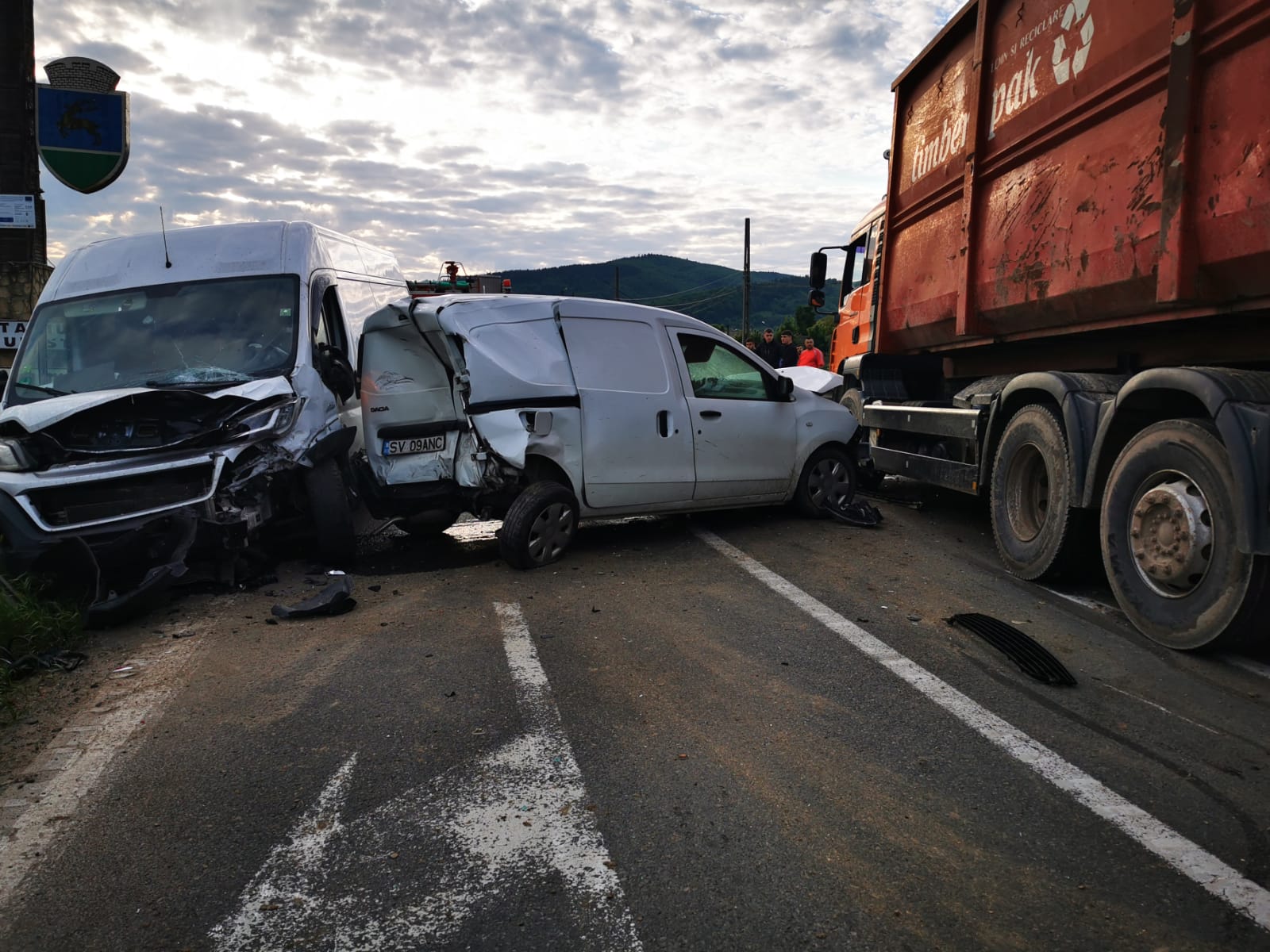 Un accident grav, în care au fost implicate trei autoutilitare și un camion, a fost produs de un adolescent de 17 ani din Botoșani. Evenimentul rutier a avut loc vineri, pe DN 17, la intrarea în Gura Humorului dinspre Păltinoasa. Adolescentul de 17 ani, din Lunca, lucra la un service din apropiere, iar după program s-a urcat la volanul unei furgonete care era adusă la vopsit și a ieșit la plimbare.