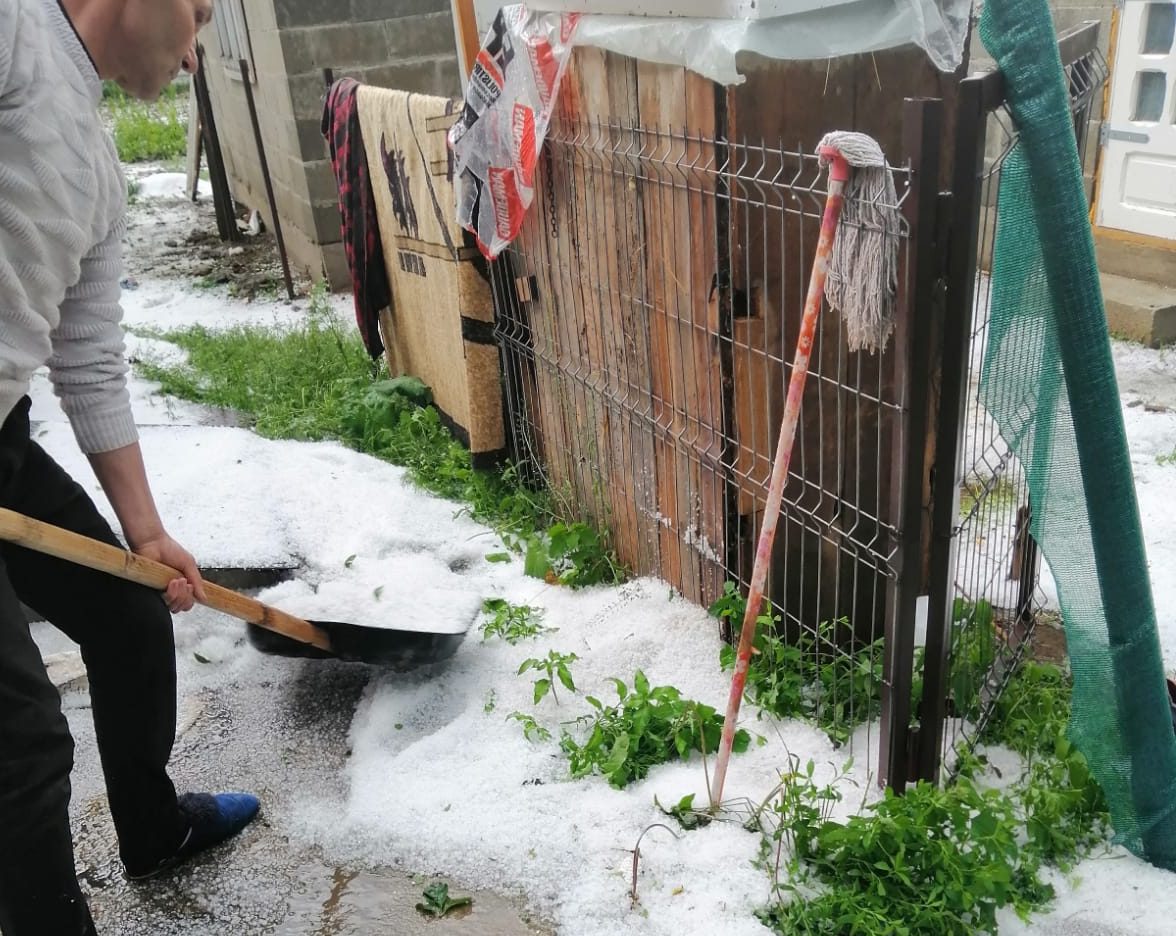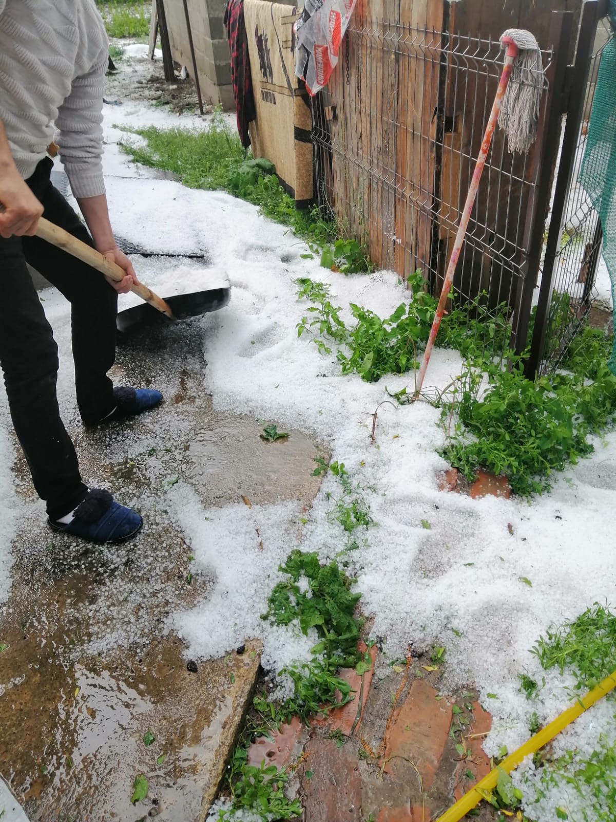 Grindină îndepărtată cu lopata într-o localitate din Botoșani! Imaginile incredibile au putut fi văzute joi după-amiază, la Hudești. Oamenii spun că nu au mai văzut așa ceva până acum. Zeci de kilometri de drum au fost afectați de inundații. Apele scurse de pe versanți au „măturat” balastul de pe drumuri și a afectat, de asemenea, cinci podete.