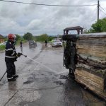Un autoturism a luat foc, luni dimineață, pe raza comunei Durnești. Conducătorul auto a văzut că iese fum de la motor și a avut prezența de spirit să oprească și să iasă din mașină. În scurt timp, flăcările au cuprins întregul autoturism.