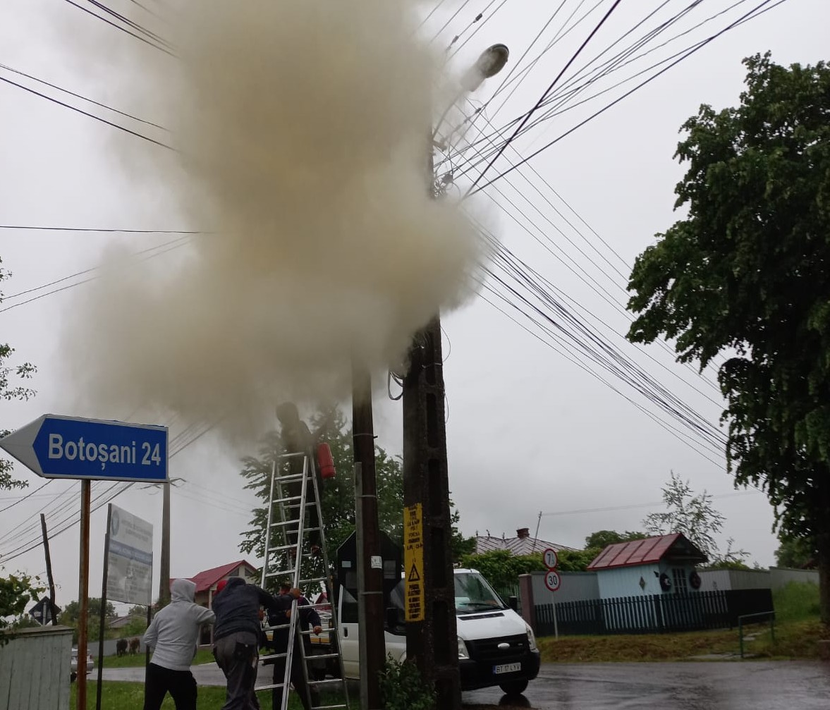 La Vorona și Dracșani, doi stâlpi electrici au luat foc. Pentru stingerea acestora au intervenit pompierii voluntari din cele două comune.