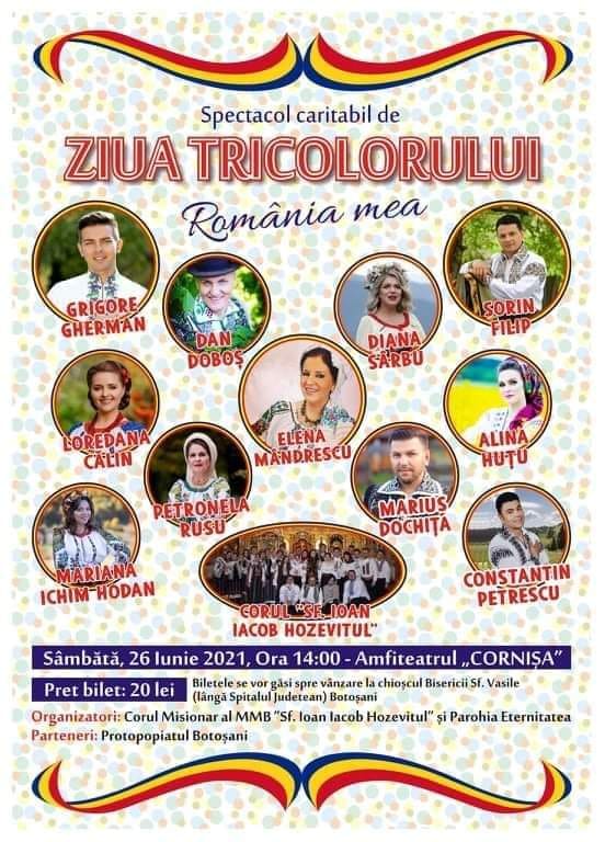 Un concert caritabil, cu mai mulți artiști, va avea loc la Botoșani sâmbătă, 26 iunie, de la ora 14.00, în Amfiteatrul Cornișa. Pretul unui bilet este de 20 de lei, iar banii vor ajunge la o familie greu încercată. Parohia Eternitatea Botoșani împreună cu Corul „Sf Ioan Iacob Hozevitul”, condus de Gabriel Corolea, în parteneriat cu Protopopiatul Botoșani, organizează acest spectacol caritabil.